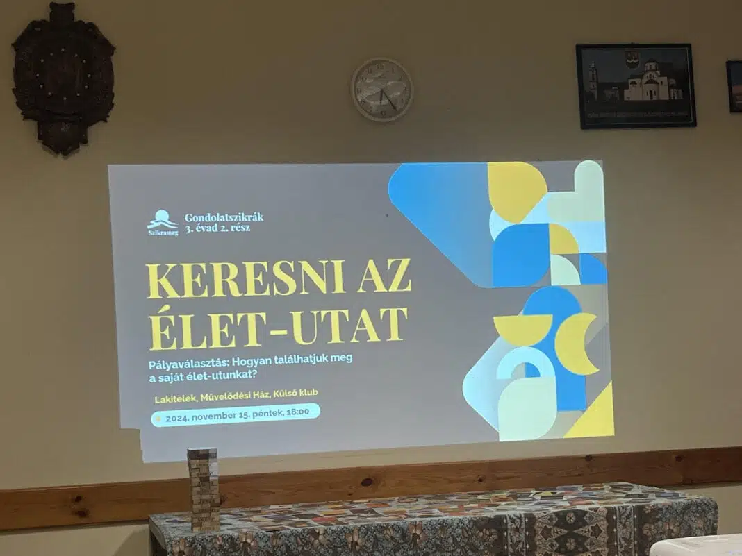 Az idei rendezvény középpontjában az „élet-út” állt. A szervezők célja az volt, hogy rámutassanak: pályaválasztás nem egyetlen, pillanatnyi döntés eredménye, hanem egy életünkön átívelő, folyamatos önreflexiót igénylő folyamat. A kerekasztal beszélgetésben Madariné Ádám Györgyi és Felföldi-Szűcs Nóra pályaválasztás területén széles látókörrel rendelkező tanárokként vettek részt.