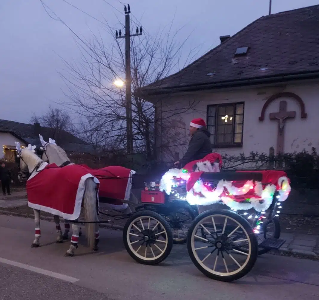A Kerekdombért Egyesület idén is különleges eseménnyel készült a lakosságnak, hiszen a Mikulás egy feldíszített lovaskocsival érkezett meg a faluba, amelyet kettő, ünnephez öltöztetett ló húzott.
