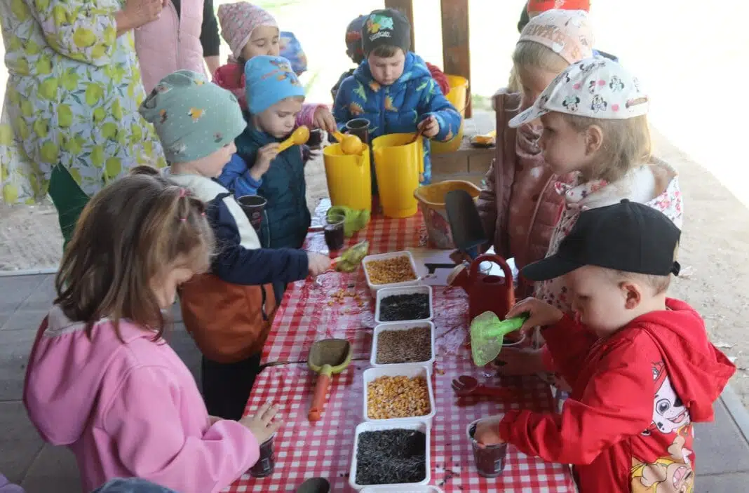 Nem csak az óvodások, de a bölcsődések is hat állomáson vettek részt. Az elsőn papírból kivágott háziállatokat kellett kirakniuk, majd pedig homokban kellett megtalálniuk különböző műanyag állatokat. A szelektív hulladék válogatáshoz természetesen kesztyűt is kaptak. Négy különböző dobozba kellett beletenniük a papír, műanyag, üveg és konzervesdoboz szemetet. A könyvtárban egy kisfilmet nézhettek meg 2025 év madaráról a böjti récéről. Nagy sikert aratott a kombájn és a bálázó gép, mind a kettő vezető fülkéjébe, felmászhattak és bele is ülhettek a sofőr ülésbe. Újdonságnak számított az önrakodó kukásautó, ami szintén nagyon tetszett a gyerekeknek. Végül kukoricát, búzát és napraforgót ültethettek el műanyag poharakba, hogy megnézzék, hogyan fog majd fejlődni. A gyerekek ezúttal is hatalmas élménnyel lettek gazdagabbak.