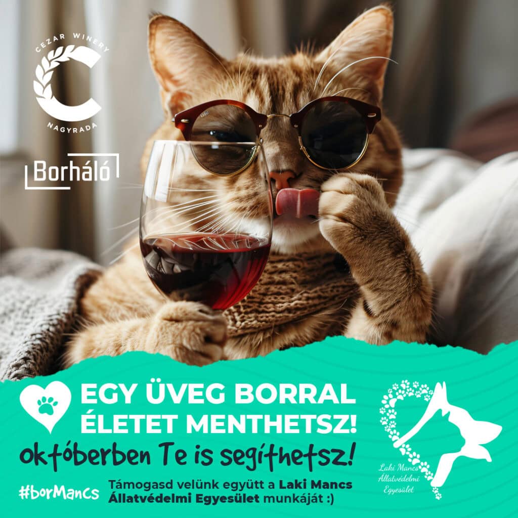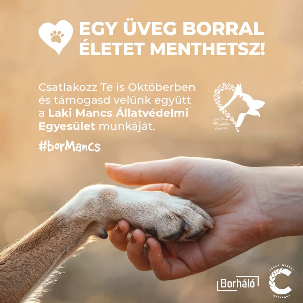 Elindult a BorMancs jótékonysági kampány az árván maradt és bántalmazott állatok javára! Október az állatok hónapja, és ennek jegyében indította el a Cezar Pincészet és a Borháló a „BorMancs” elnevezésű jótékonysági kampányt, amelynek célja, hogy segítsék a Laki Mancs Állatvédő Egyesület munkáját. A Cezar Pincészet nagyradai üzletében és webshopjában minden megvásárolt palack bor után 100 forinttal támogatja az egyesületet, a Borháló pedig szintén webshopjában kínál adománygyűjtő lehetőséget vásárlóinak. A fogyasztók maguk dönthetnek arról, mennyivel egészítik ki virtuális kosaruk értékét, így közvetlenül támogatják az állatvédelmi egyesület munkáját, vásárlásuk mellett.