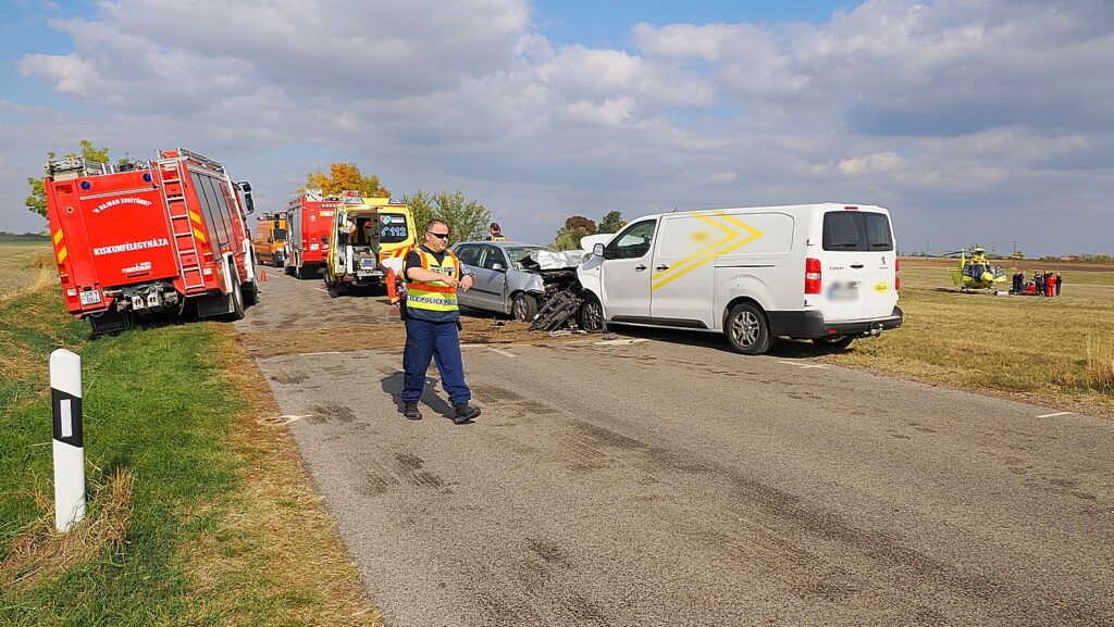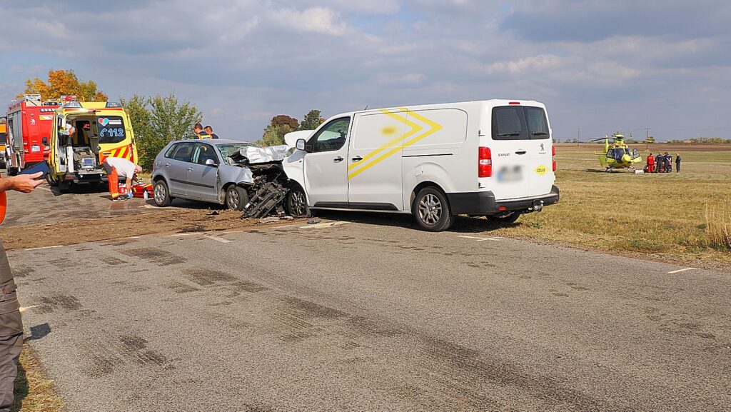 Ketten sérültek meg abban a balesetben, ami ma délután történt Kiskunfélegyháza és Tiszaalpár között. Az egyik sérültet mentőhelikopterrel vitték kórházba.
