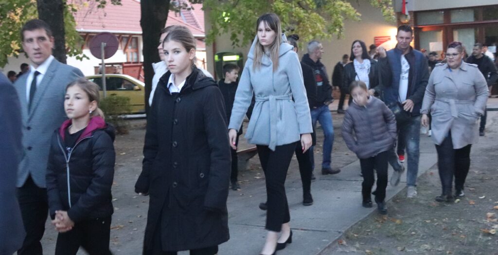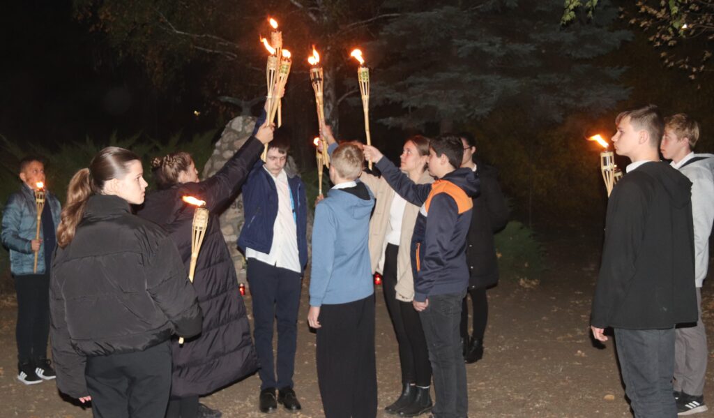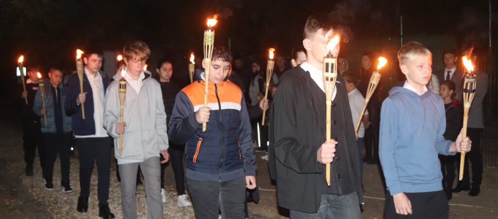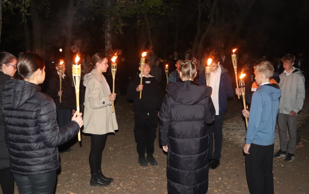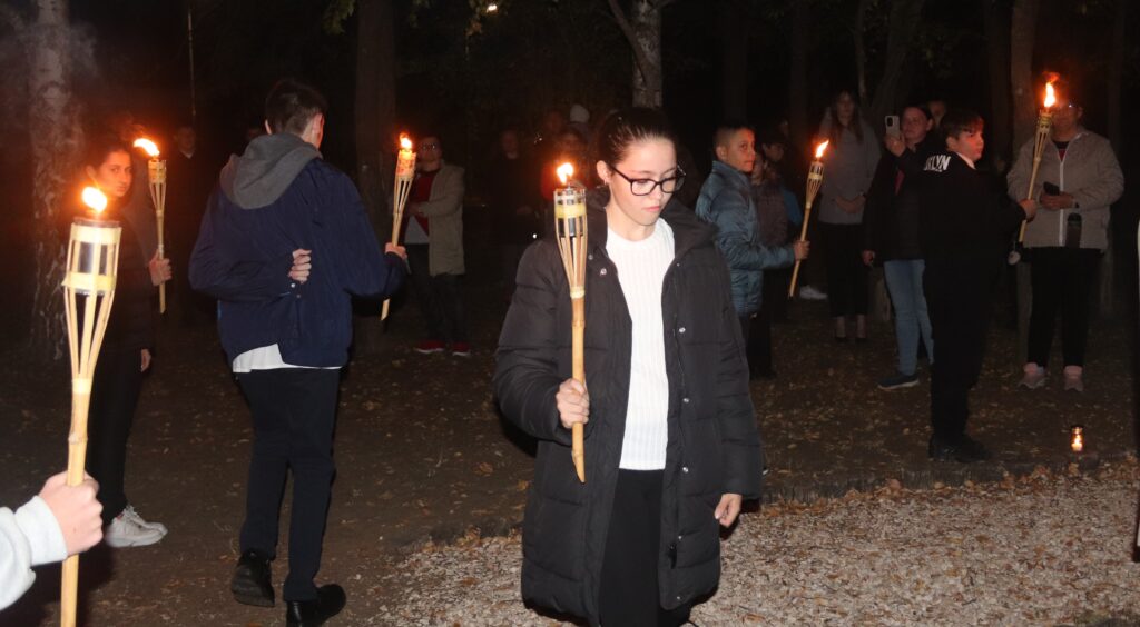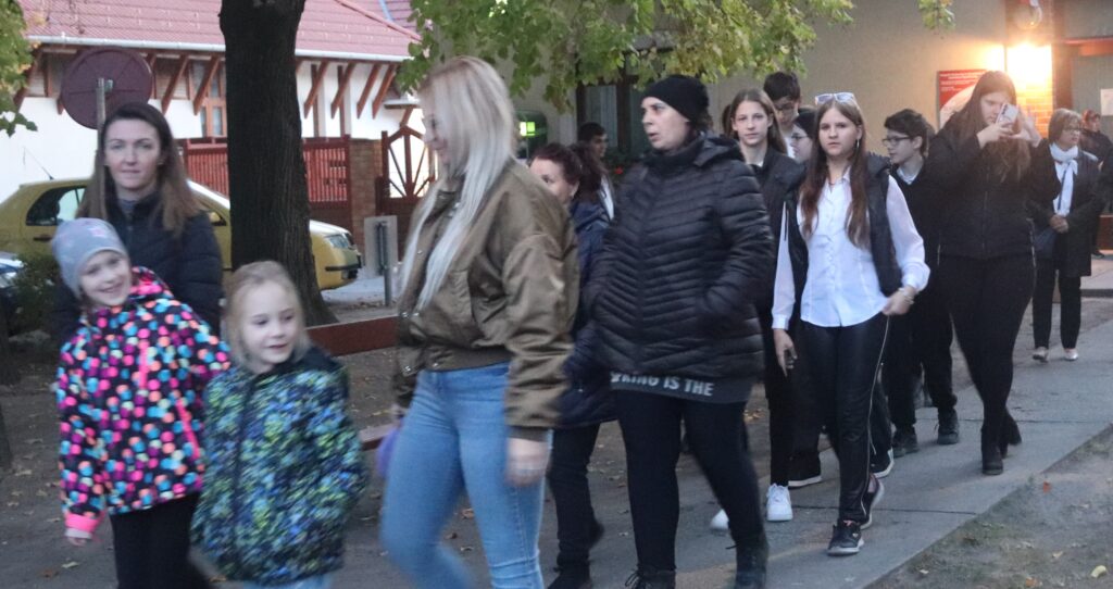 Ezt követően, a hagyományoknak megfelelően meggyújtották a fáklyákat, és az ünneplők, lassú, gyalog menetben, a mintegy egy kilométerre lévő millenniumi emlékműhöz vonultak, ahol a 7. osztályosok adták elő műsorukat, ami történelmi visszatekintés volt, és amit Szenekné Édes Kornélia tanított be.