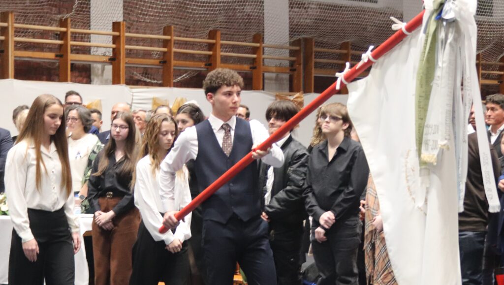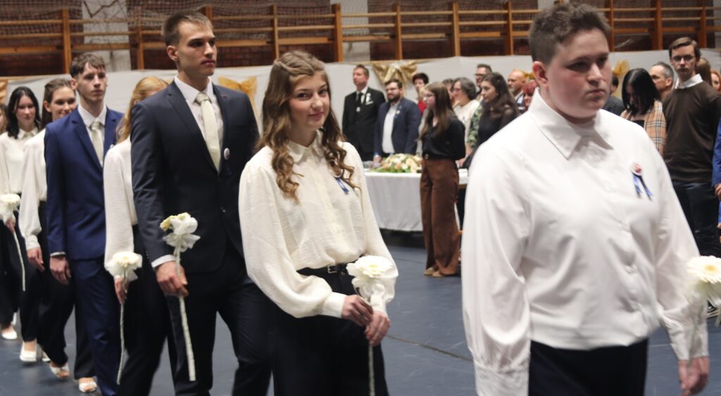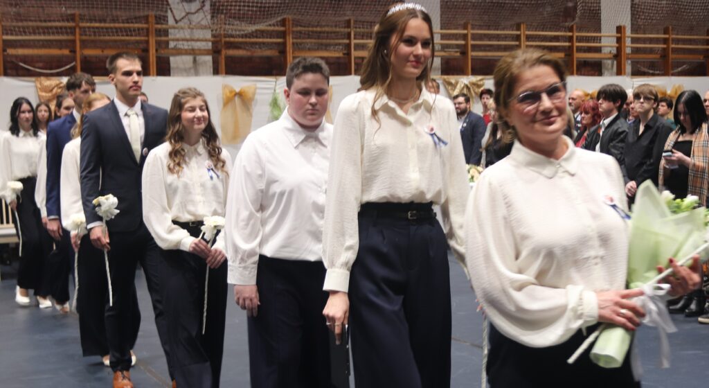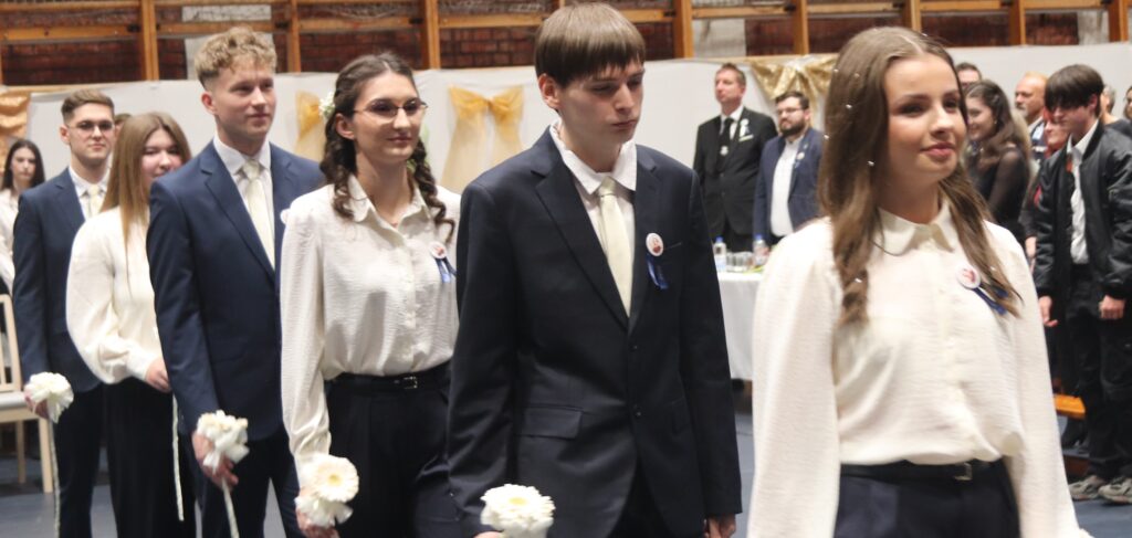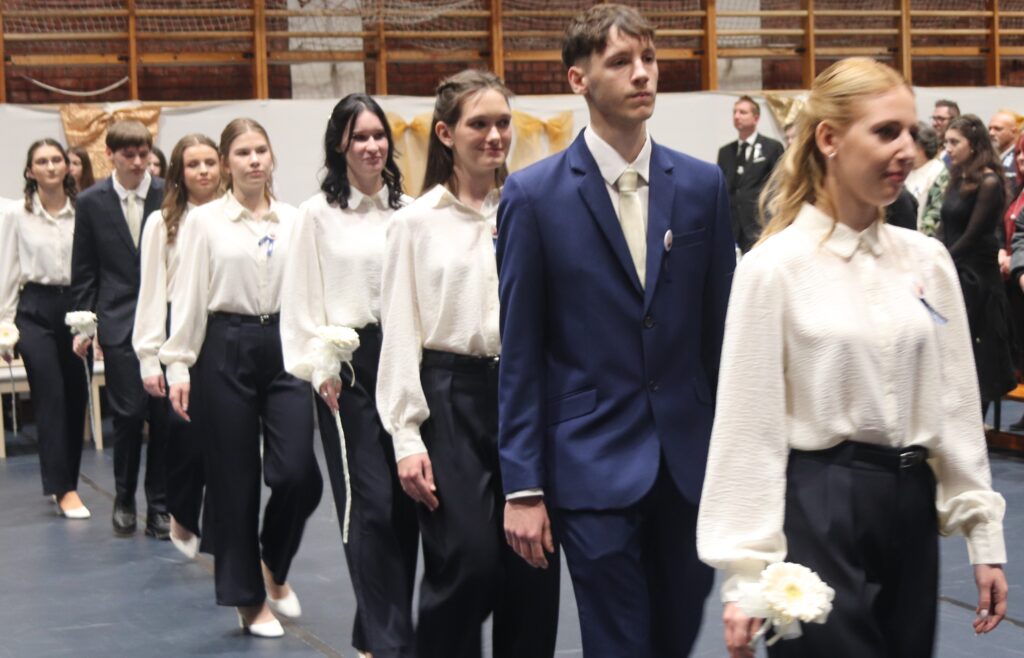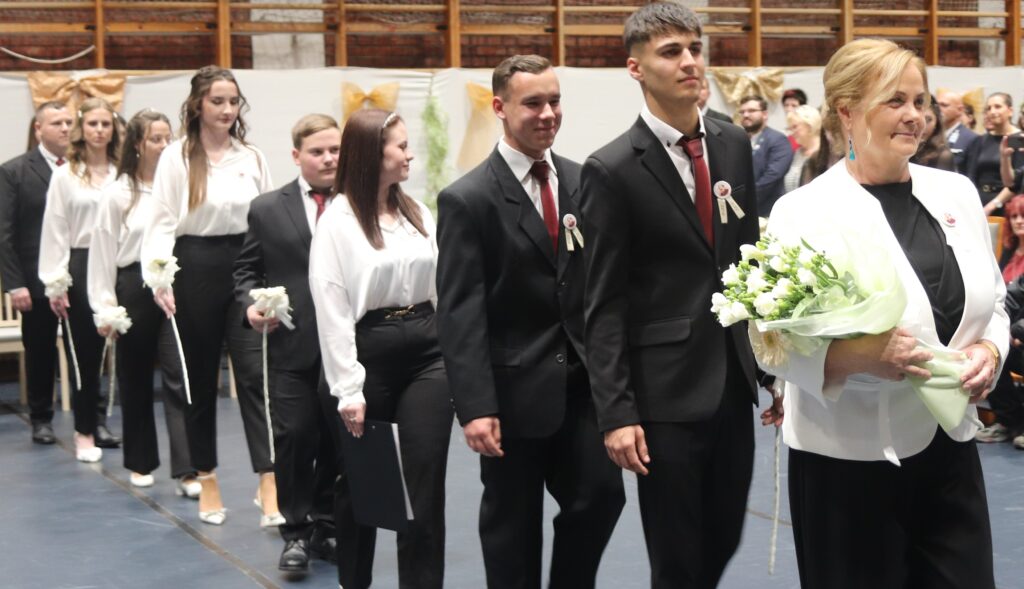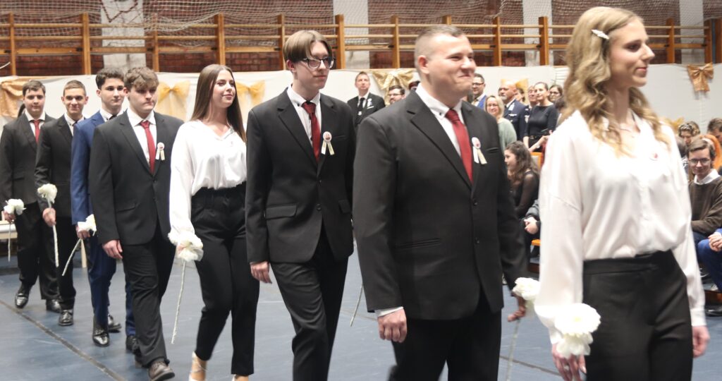 A hagyományoknak megfelelően először azok a diákok léptek a terembe, akik feltűzték a szalagot a 12-esek mellére, majd pedig a végzősök lépkedtek be osztályfőnökeik vezetésével. Az iskola zászlójának behozatala után Gergelyné Győrki Edina köszöntötte a 2026-ban érettségiző diákokat.