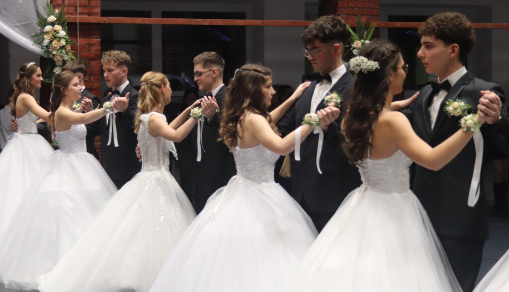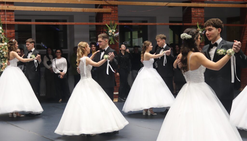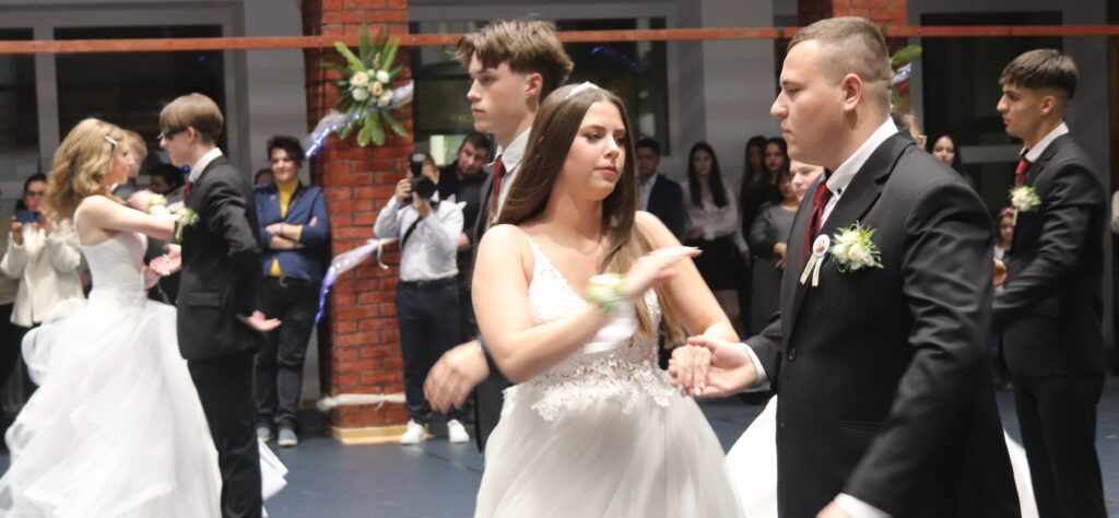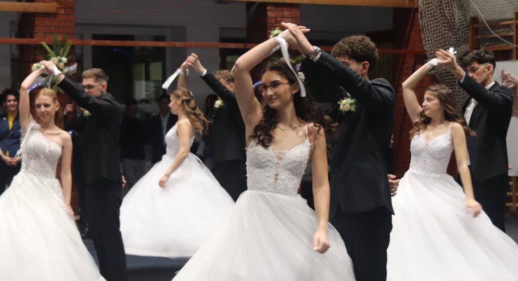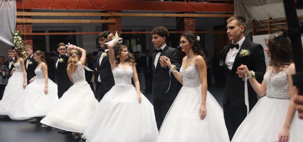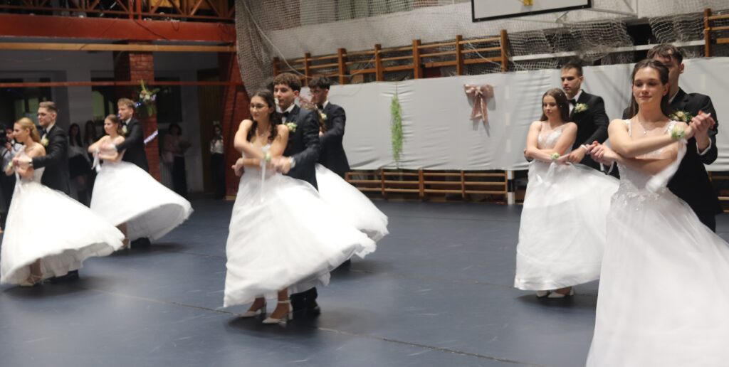 Ezt követően a 11. osztályosok, egy szál virág kíséretében feltűzték a szalagot a végzősök mellére, majd pedig következett a mindenki által nagyon várt tánc, de előtte engedélyt kértek Szendreyné Kiss Judit főigazgatótól arra, hogy bemutathassák a táncukat. Az engedélyt természetesen megkapták. Mind a két osztály keringőt táncolt, de utána még nem ért véget a rendezvény, mert, mindenki meglepetésére egy pót táncot is következett, amit nagy tapssal köszöntek meg a hozzátartozók.