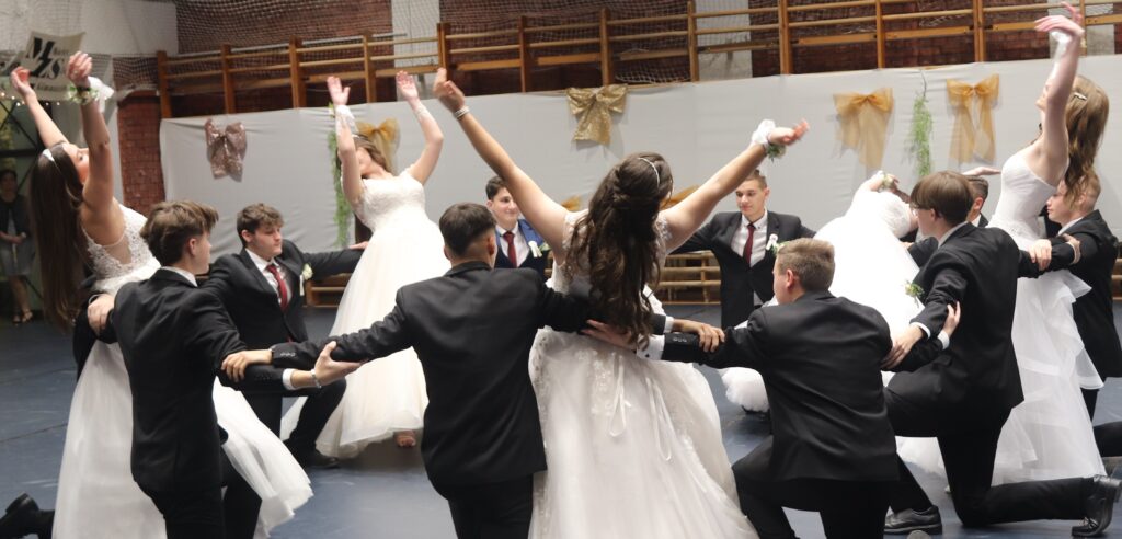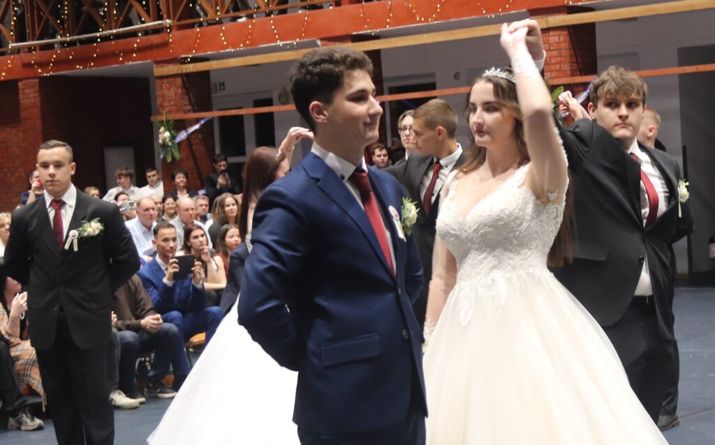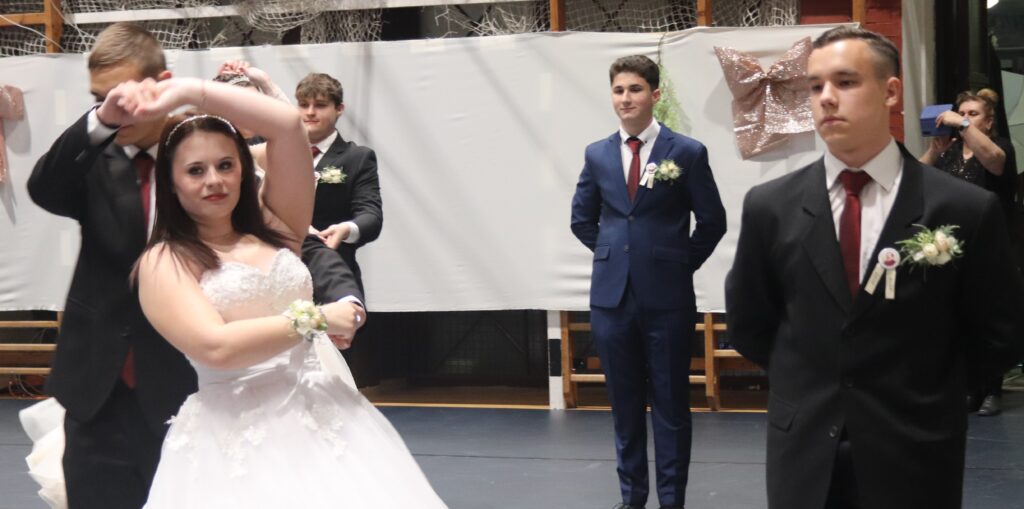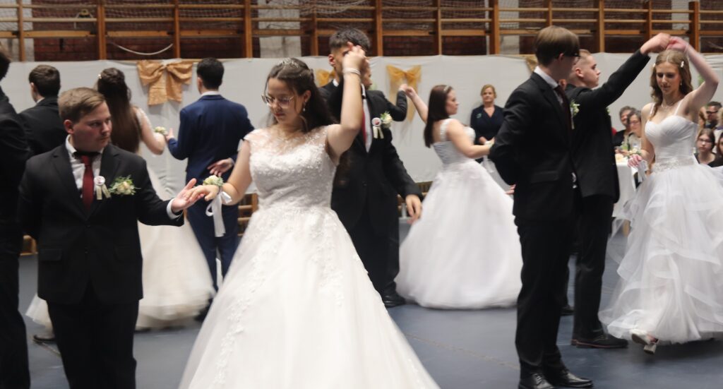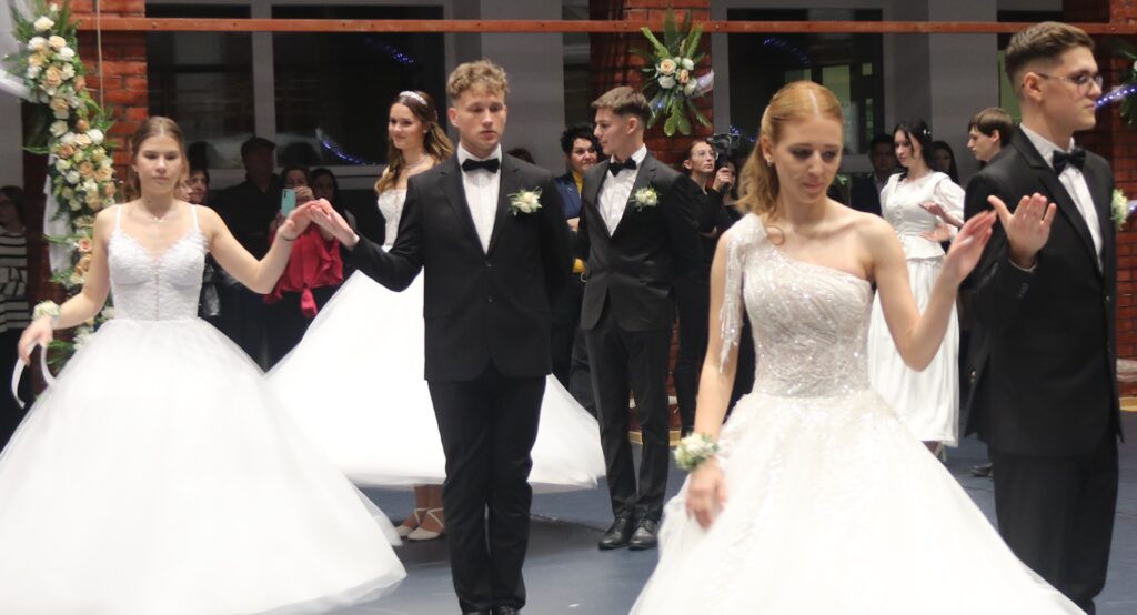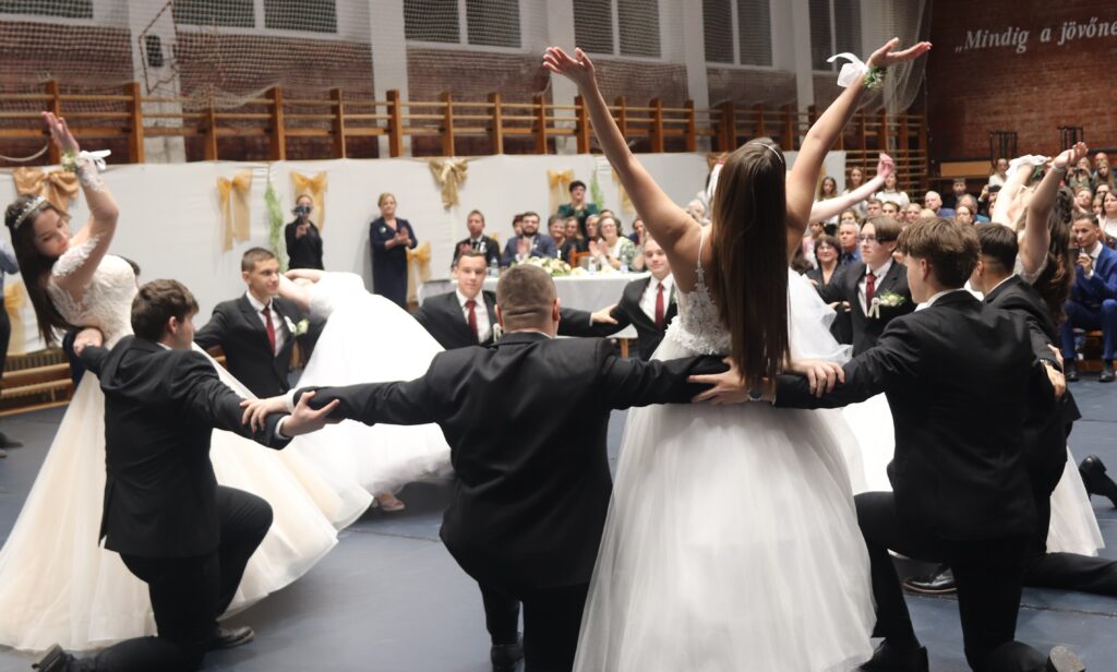 Ezt követően a 11. osztályosok, egy szál virág kíséretében feltűzték a szalagot a végzősök mellére, majd pedig következett a mindenki által nagyon várt tánc, de előtte engedélyt kértek Szendreyné Kiss Judit főigazgatótól arra, hogy bemutathassák a táncukat. Az engedélyt természetesen megkapták. Mind a két osztály keringőt táncolt, de utána még nem ért véget a rendezvény, mert, mindenki meglepetésére egy pót táncot is következett, amit nagy tapssal köszöntek meg a hozzátartozók.