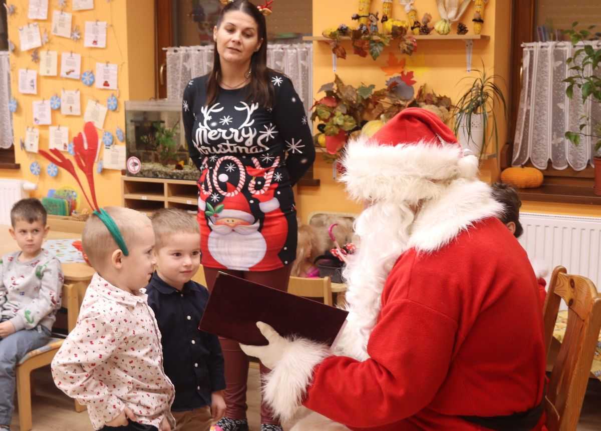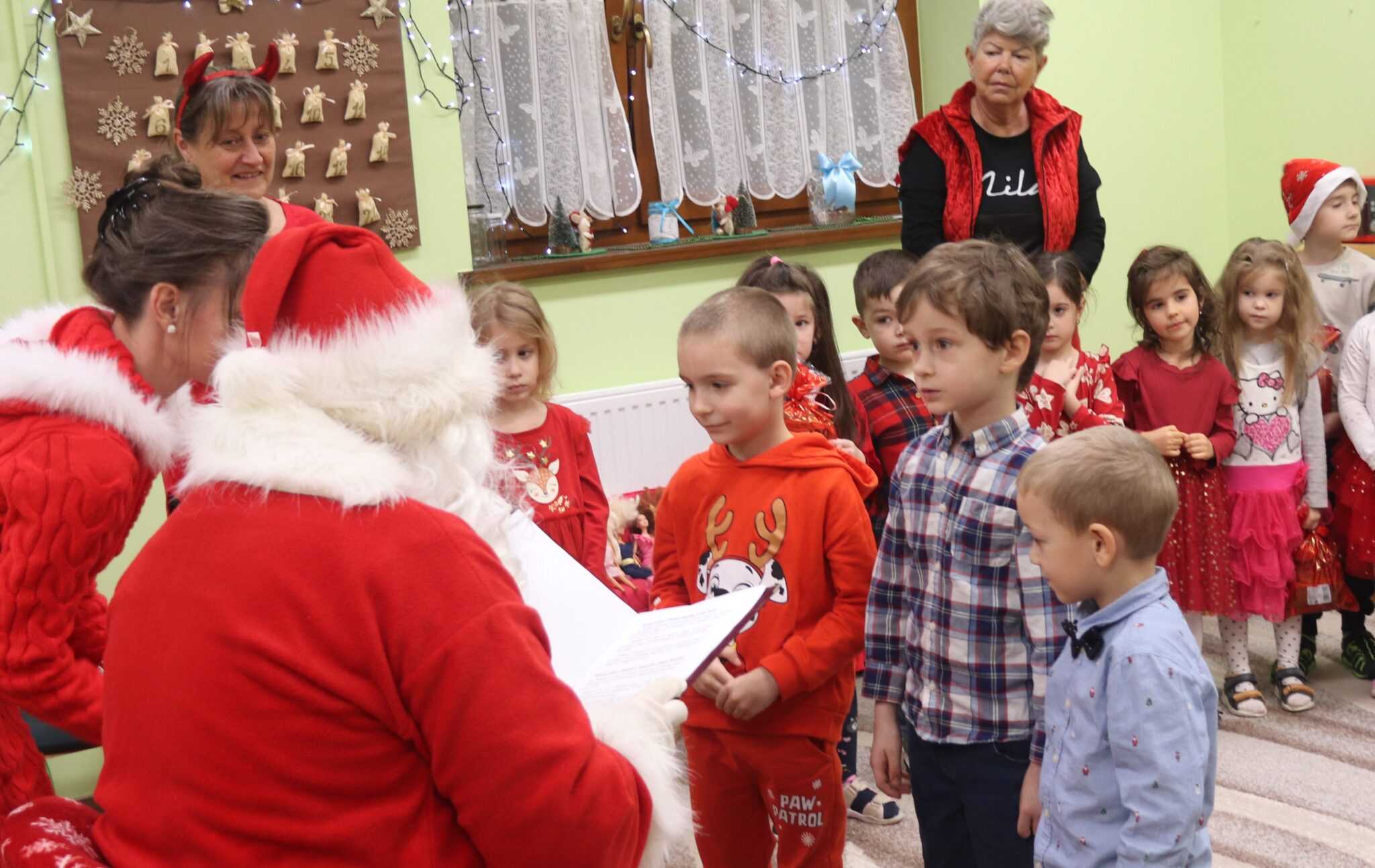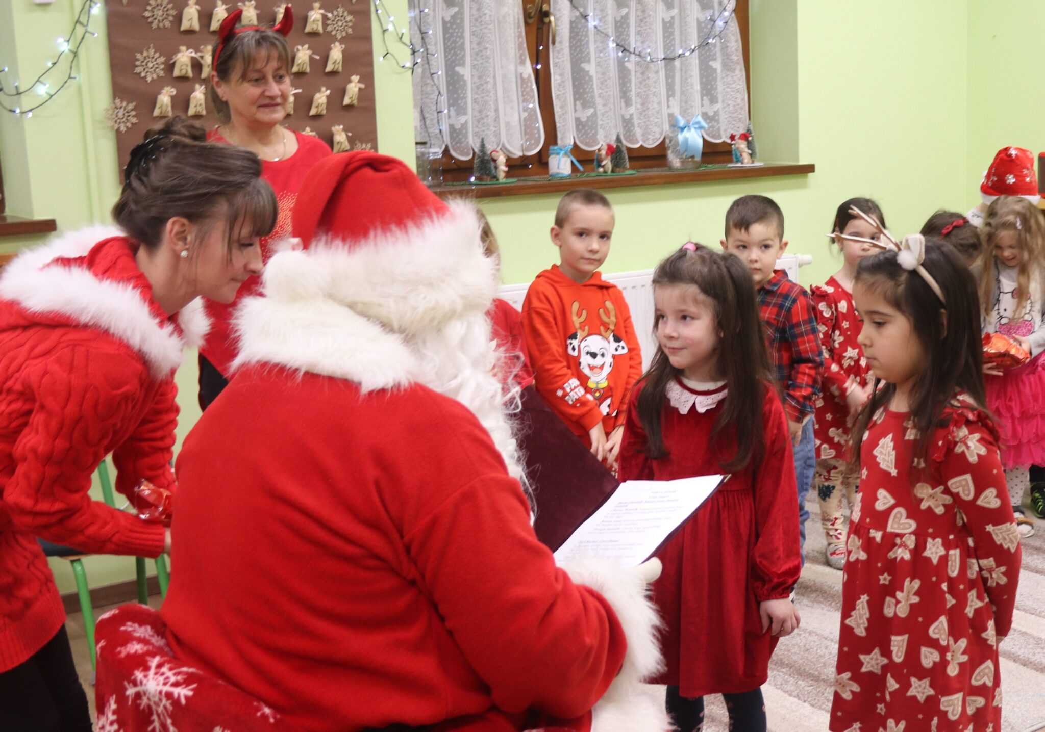 Az óvodásoknál viszont már nem volt olyan probléma, hogy sírva fakadtak volna. Még a legkisebbek is bátran kiálltak a télapó elé, hogy meghallgassák mit mind róluk a Mikulás és átvegyék a csomagjukat. Előtte azonban verssel és énekkel köszöntötték a nagy szakállút. Nem csak a gyerekek, de az óvó nénik, dajka nénik és minden technikai dolgozó is kapott ajándékot a Mikulástól. Az egyik csoportban pedig még rajzokat is készítettek a gyerekek, amit át is adtak a télapónak.