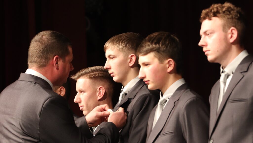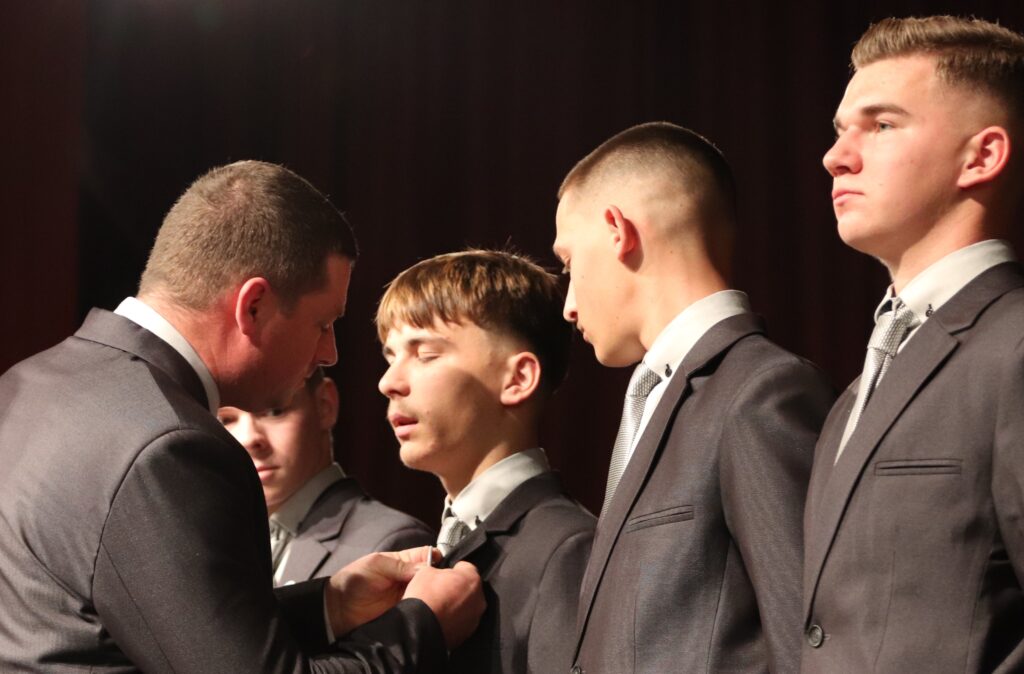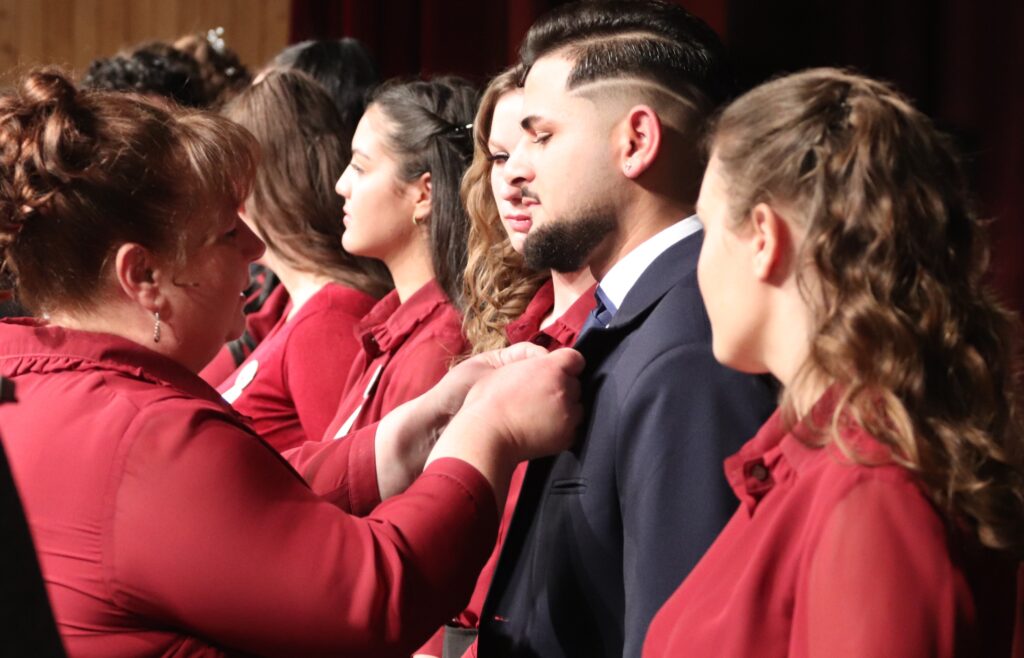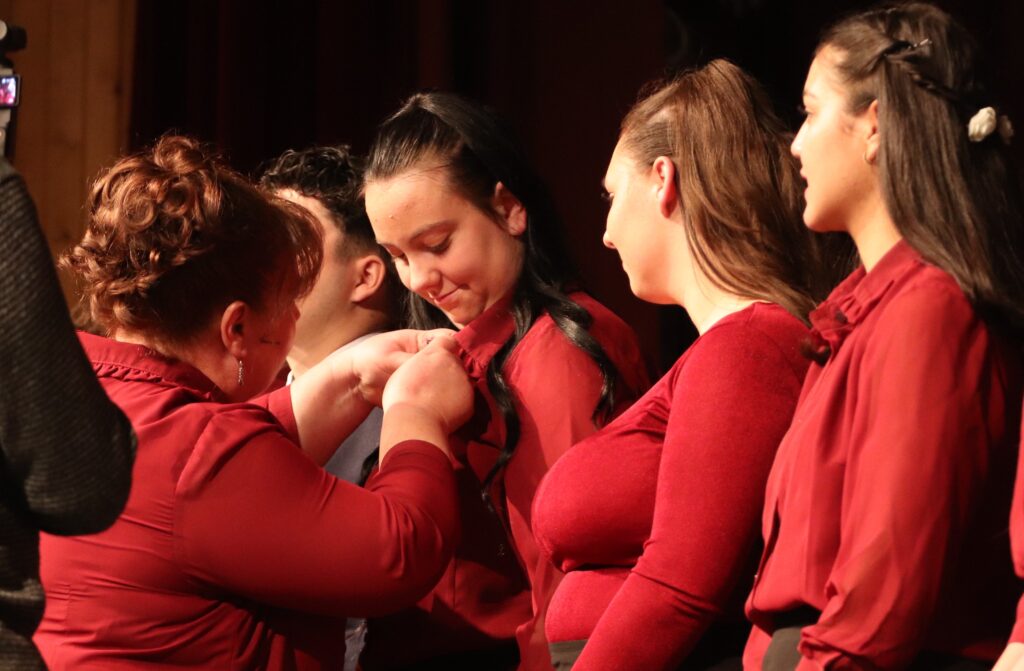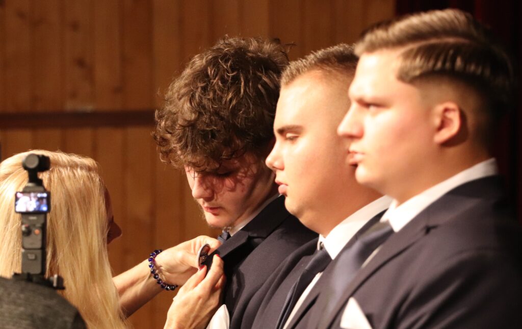 esztő, forgácsoló és mezőgazdasági gépszerelő diák mellére tűzték fel a szalagot az osztályfőnökök.