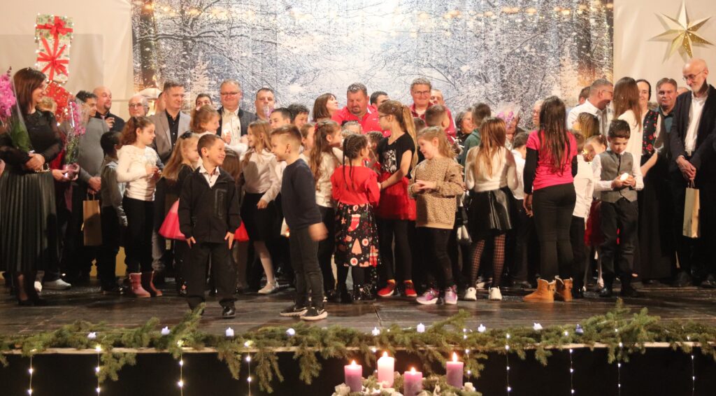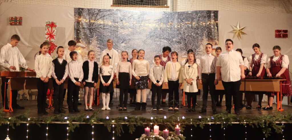 A programban először az első osztályosok karácsonyi műsorát láthatták a jelenlévők, majd a helyi Pöszméte citerazenekar kezdő és már gyakorló tagjai adtak elő ünnephez illő dalcsokrot. Az Up for Dance tánccsoport tagjai, óvodások és iskolások új koreográfiát mutattak be. Marsa Lázár karácsonyi történetet mesélt, a Fülemüle énekkar pedig adventhez kapcsolódó dalokat adott elő. Dávid Orsolya, Palotás Endre és Orosz Csaba alkotta Szellőének együttes tagjai hangszeres kísérettel adtak elő karácsonyi énekeket.