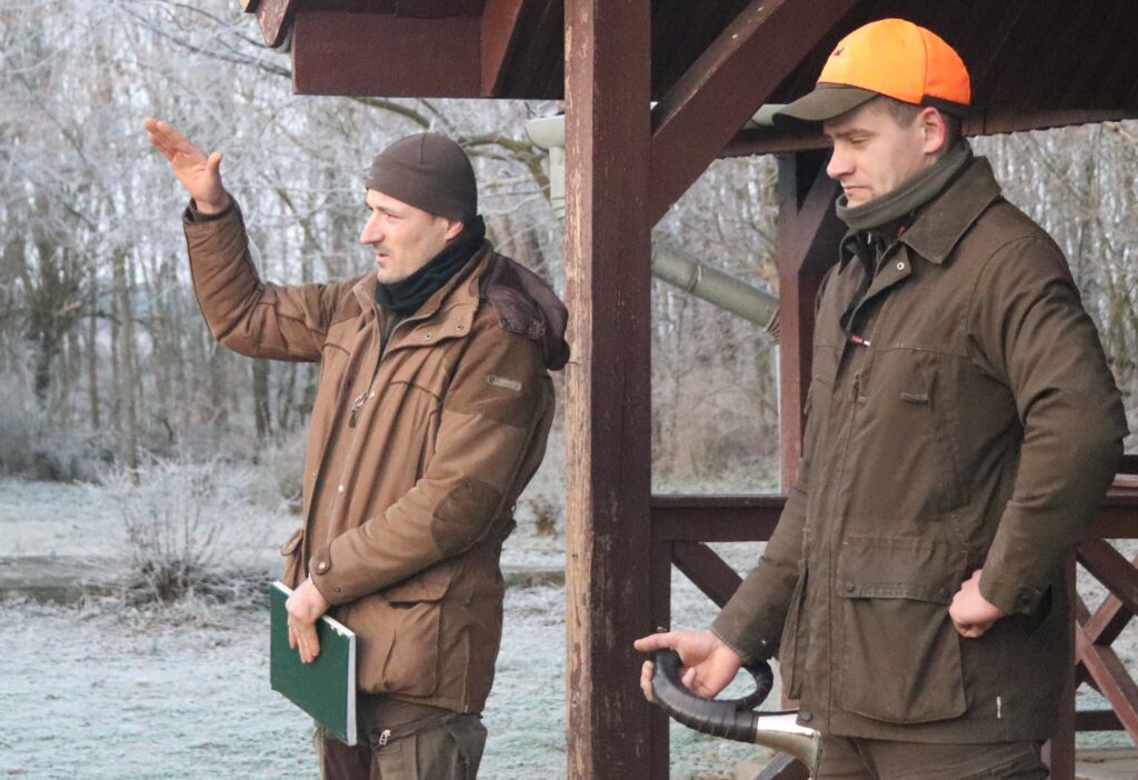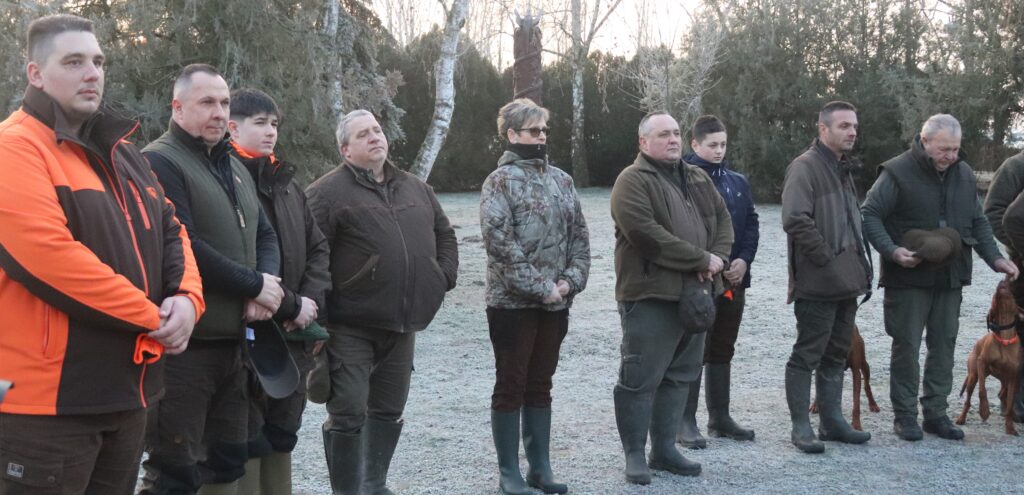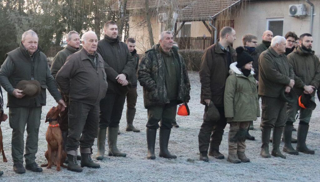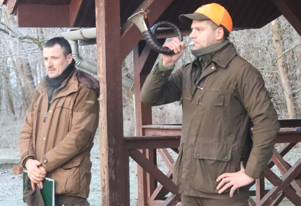 Mielőtt megkezdődött volna a vadászat, Palásti Gergő a társaság hivatásos vadásza szólaltatta meg a vadászkürtöt, majd pedig Szabó Zsolt a másik hivatásos vadász mondta el, mire figyeljenek a puskás emberek és a hajtók a hajtások során. Felhívta mindenkinek a figyelmet arra, hogy mikor és milyen szögben lehet lőni, és a hajtások végén már nem lehet befelé tüzelni, még akkor sem, ha nyúl vagy fácán lehet bent, nehogy a leállókat találat érje.