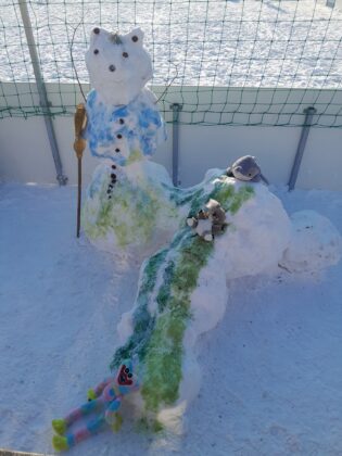 A napközis tanulók, az iskola udvarán, Seres Sába tanítónő kreatív tervezése révén valósították meg a pályázatban induló hód(ember) csúszdát. Az udvaron és a termekben talált mindenféle dolgokat felhasználtak és egy kevés ételszínezék is jutott az alkotásra. A diákok szorgalmasan együtt dolgoztak, hogy minél kifejezőbb legyen és elkészüljön a remekmű. Sokat dolgoztak vele és a látottak alapján valóban hasonlít az alkotás a hó(d)emberre. Az iskolatársaik szerint is remekműről van szó.