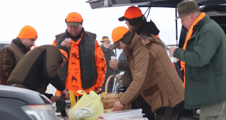 A társaság vadászházánál gyülekeztek a helyi vadászok, akik közül többen is vendégeket hívtak. Így a puskák létszáma közel negyven volt. Újdonság volt az, hogy Gyügyei Béla vadászkürtösként mutatkozott be. Ezt követően Bollók Bálint vadászatvezető létszámellenőrzést tartott, majd pedig segítsége, Kovács Pál ismertette, hogy milyen területeken fognak fácánkakasra vadászni. Kiemelten hangsúlyozta, hogy mire kell figyelni a vadászat során. A társaságnál bevezették a szondázást. Ezúttal két ad hoc-ra kiválasztott „szerencsés” vadásznak kellett belefújnia az alkoholszondába. Természetesen egyiküknél sem mutatott elváltozást a készülék, így elkezdődhetett a fácánkakas vadászata.