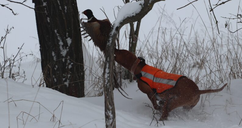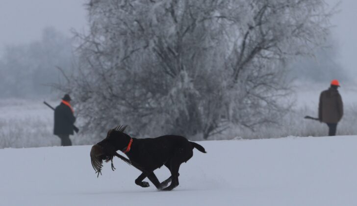 Nem lehet azt mondani, hogy ideális vadászati körülmények között rendezték meg az idei év második társasági vadászatát Szentkirályon. A lehullott nagy mennyiségű hó ugyanis nagyban befolyásolta nem csak a vadászat eredményét, de a terepen való közlekedést is. A néhány nap alatt lehullott több, mint huszonöt centiméter hóban ugyanis nem volt egyszerű közlekedni az egyébként is egyenetlen talajon. Ez viszont lehetőséget biztosított a fácánkakasoknak, hogy elbújjanak.