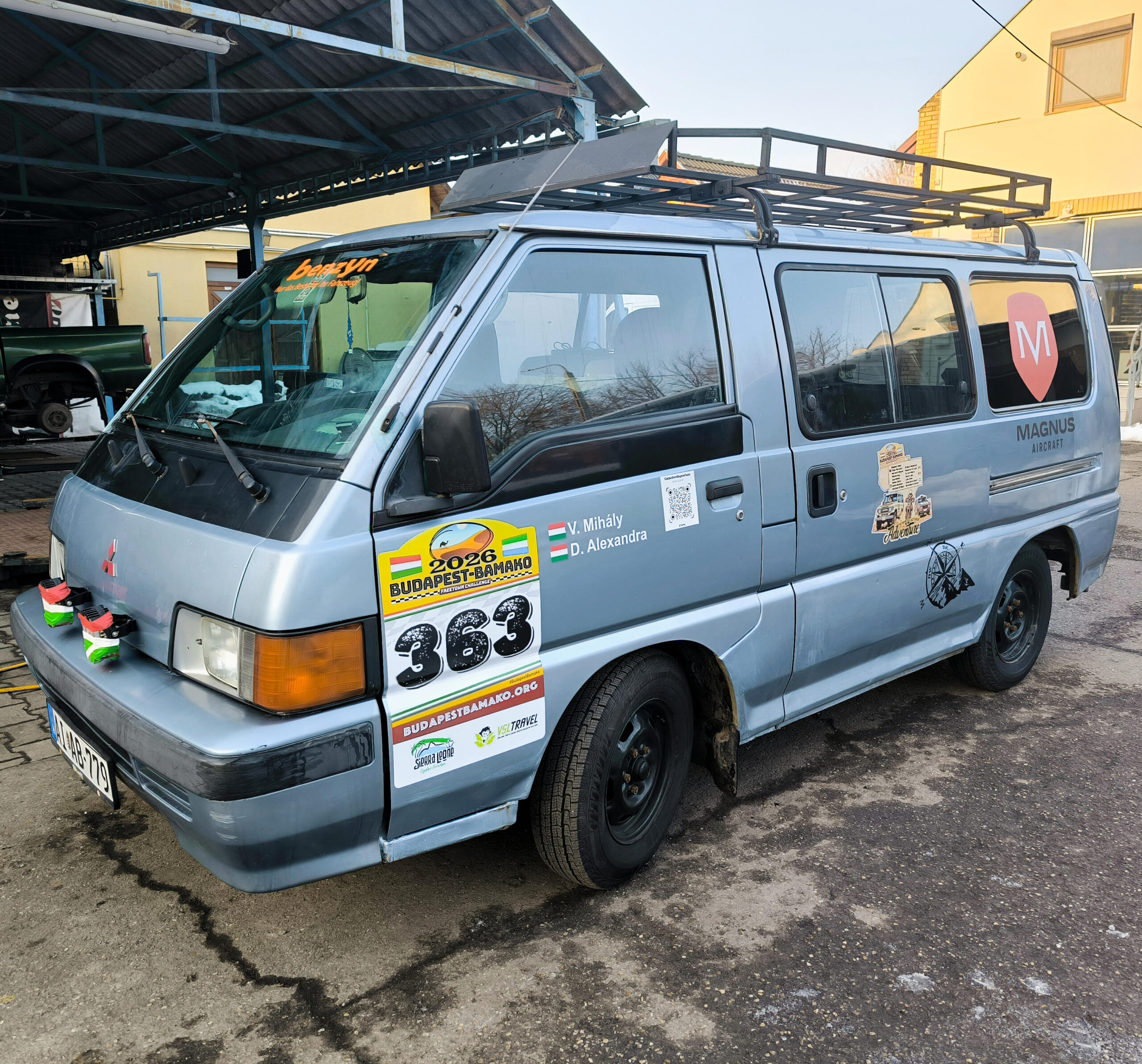– Egy 1991-es évjáratú, hátsókerekes, dízel Mitsubishi L300-assal indulunk, ami korábban egy családi autó volt, amit főleg kirándulásokra használtak és az első tulajdonosa egészen Belgiumig utazott el érte. Az elmúlt másfél évben átesett egy teljes felújításon, amit reméljük, hogy az afrikai út során meghálál nekünk és gond nélkül veszi majd az akadályokat a spirit kategóriában. Ez az őrült kategória, akiket szoktak mutogatni a tévében a Bamacon, meséli Varga Mihály. Eredetileg négy kerék meghajtású autót kerestünk, ilyen kisbuszban, mert ez az autó egy kisbusz. Az a tervünk ugyanis, hogy ebben fogunk aludni, nem pedig sátorban. A négy kerék meghajtásúak, amelyekre nem kellett volna vagyont költeni nagyon drágák voltak. Ez egy jó állapotú, de mivel több pénzünk nem lesz, mint ami van, így azt a döntést hoztuk, hogy akkor legyen ez. Úgy voltunk vele, hogy ha Trabanttal meg tudták csinálni, akkor mi is képesek leszünk rá, de ez majd az út során kiderül.