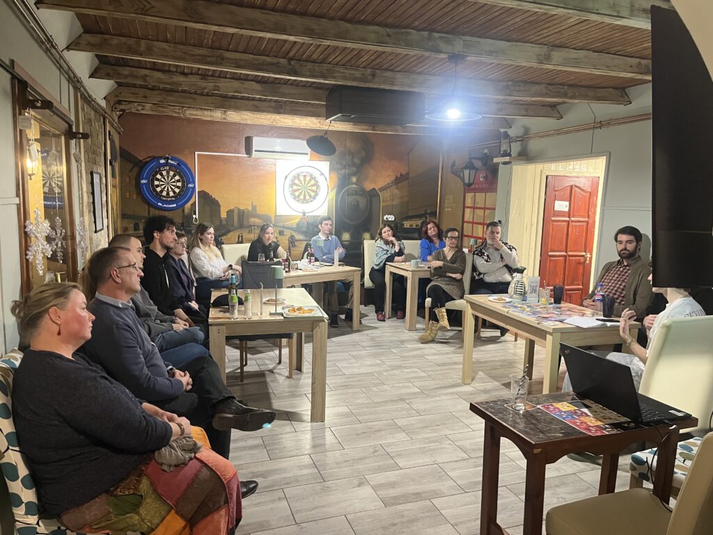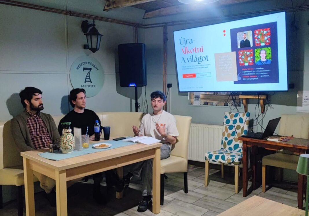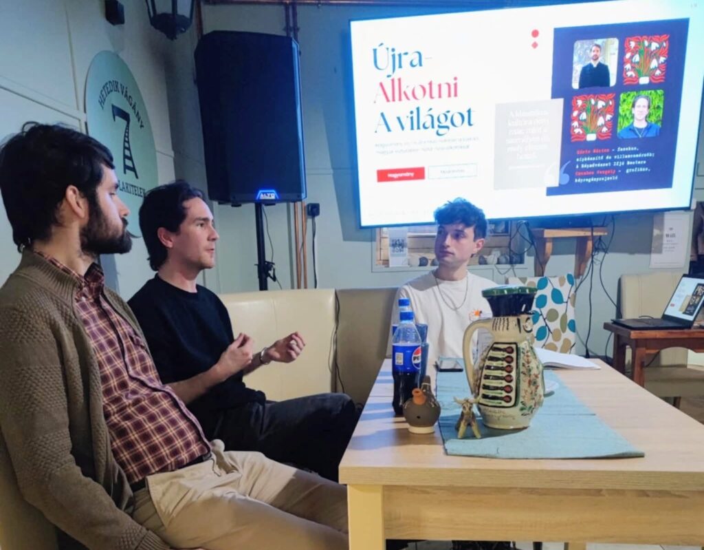 A beszélgetés vendégei két fiatal, helyi alkotó voltak: Sánta Márton fazekas–sípkészítő és Czombos Gergely grafikus, képregényrajzoló. Kovács Máté vezette moderált beszélgetés során szó esett a művészethez fűződő első személyes élményeikről, alkotói motivációikról, valamint arról, hogyan jelenik meg munkájukban a hagyomány és az egyéni kifejezés. Az est interaktív jellegű volt, a közönség aktívan bekapcsolódhatott a gondolatmenetekbe és kérdésekbe.