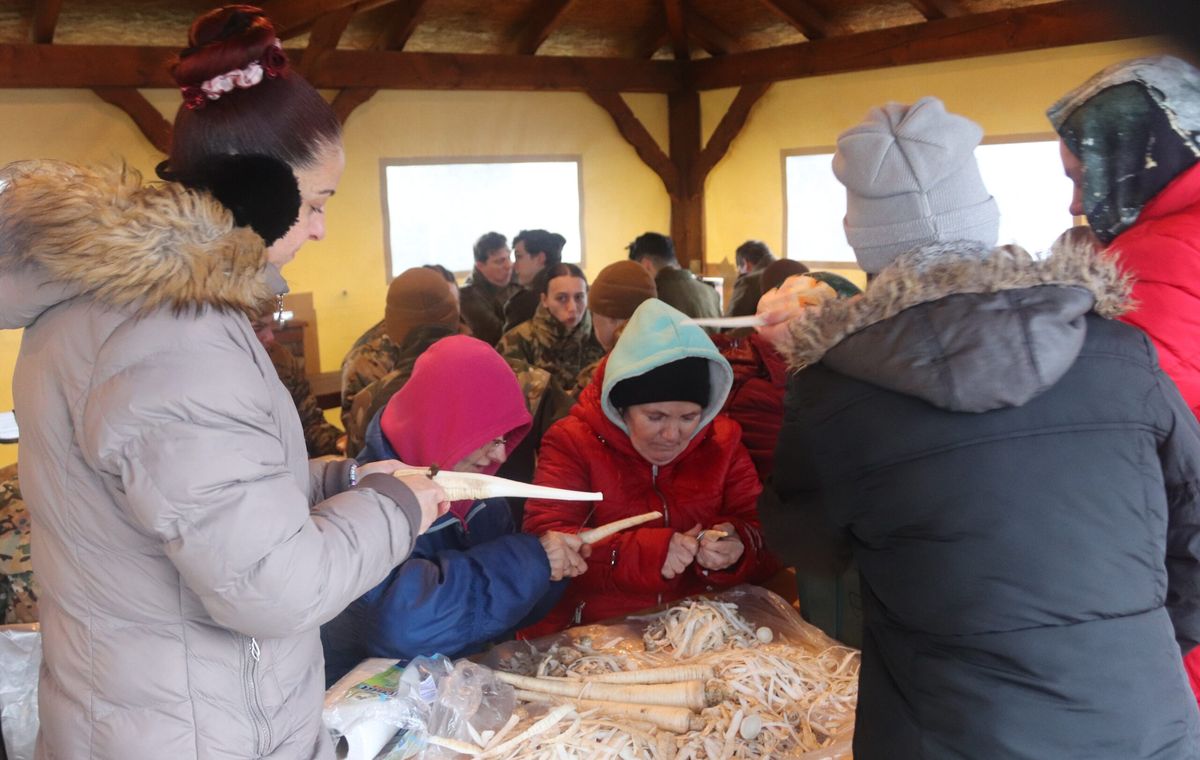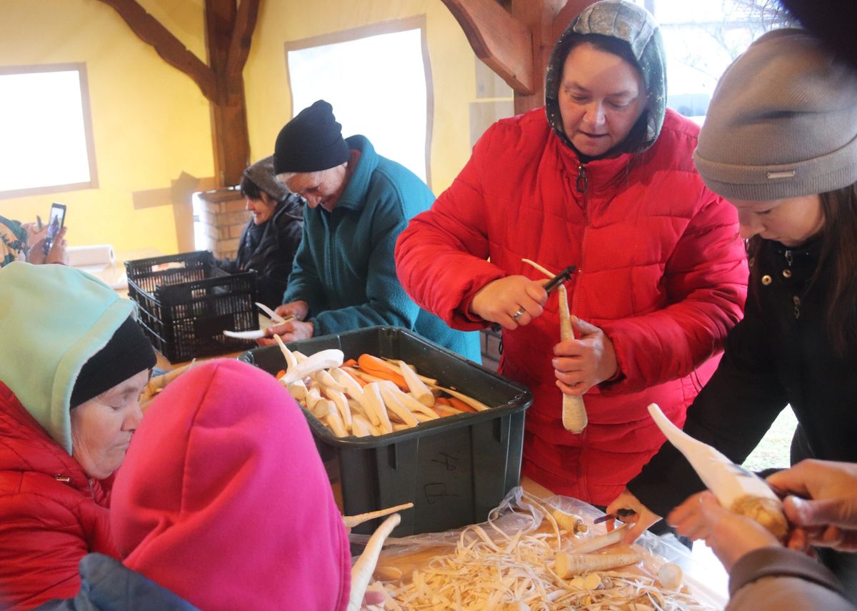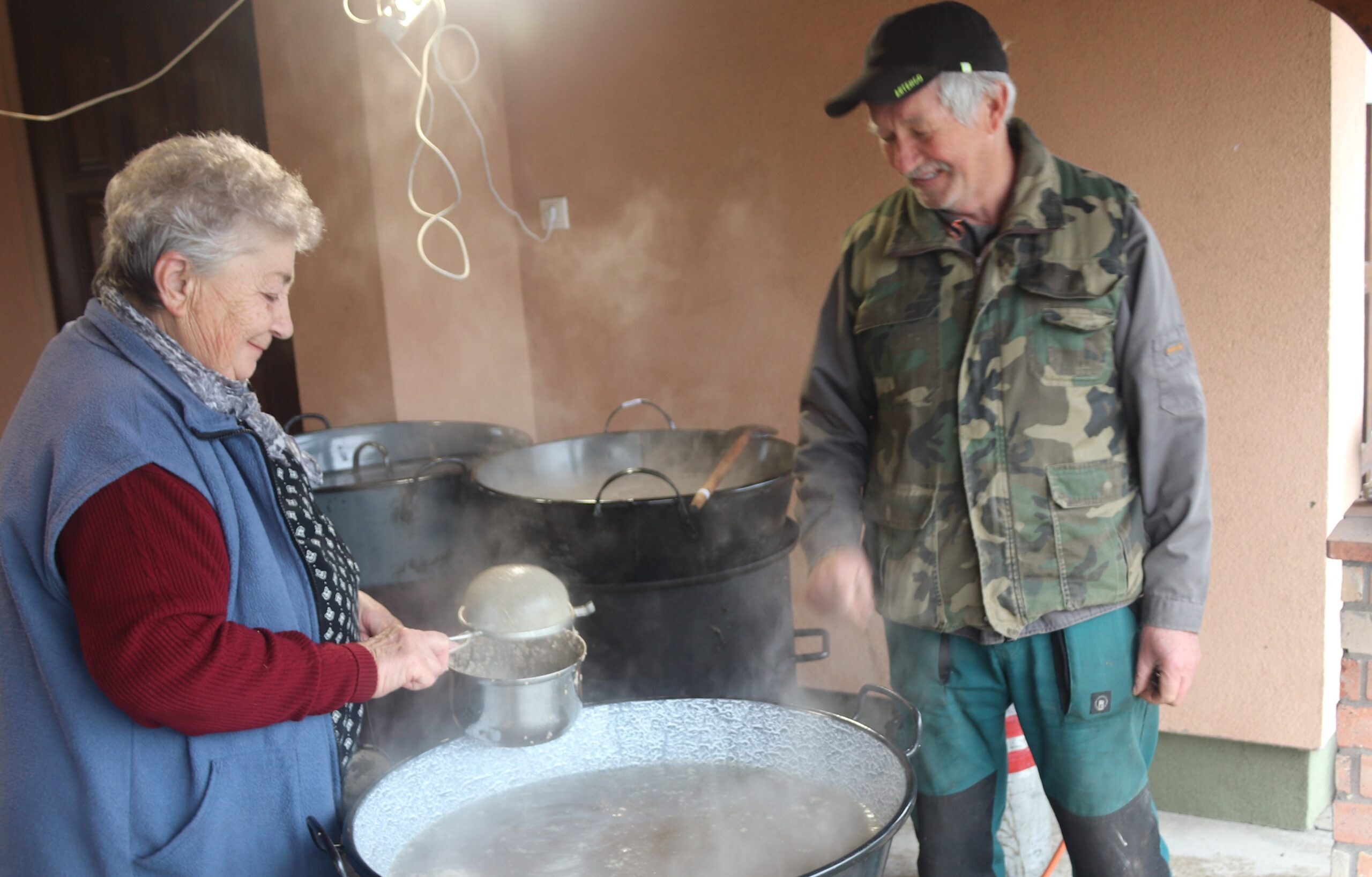 A kvartett viszont ragaszkodott a régi hagyományokhoz, így ők a megtisztított sertés belébe töltötték a kolbászt. A rizses hurkán kívül készítettek véreset, valamint disznósajtot és persze sült pecsenyét és tepertőt is, a sonkákat pedig elosztották. Azért ők is hozzájárultak a központi étkezéshez, mert adtak alapanyagokat a levesbe.
