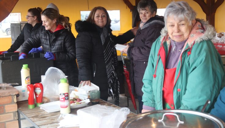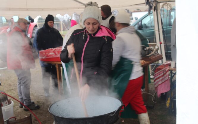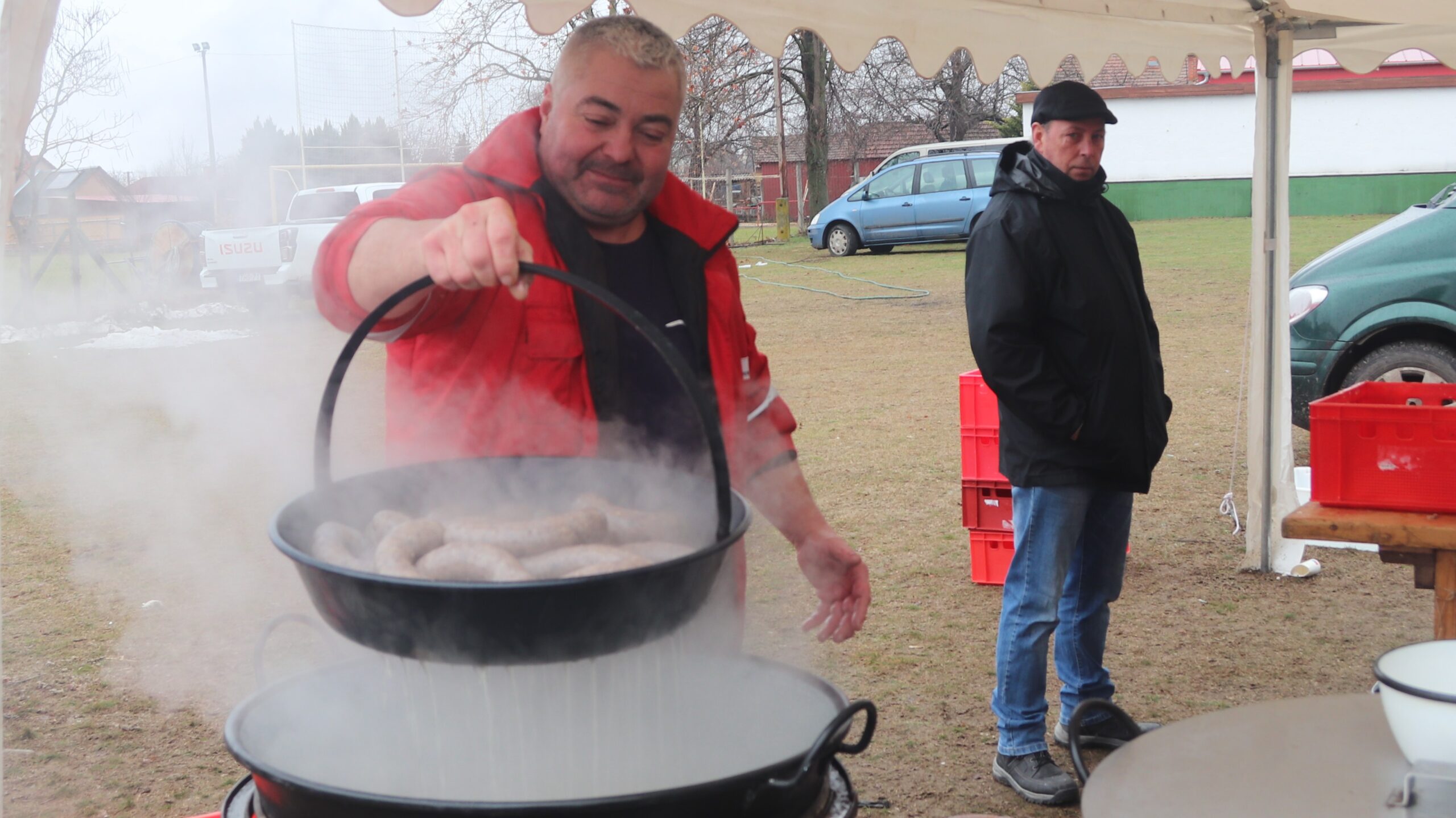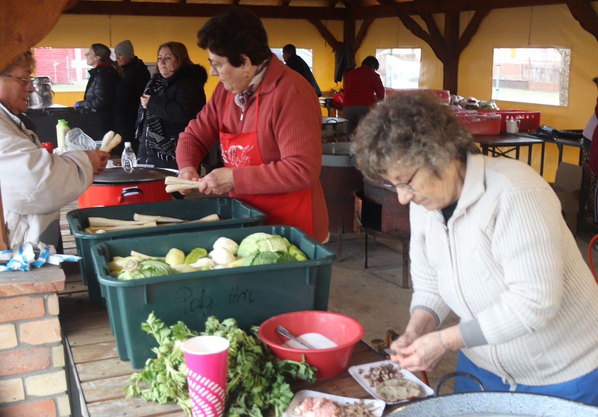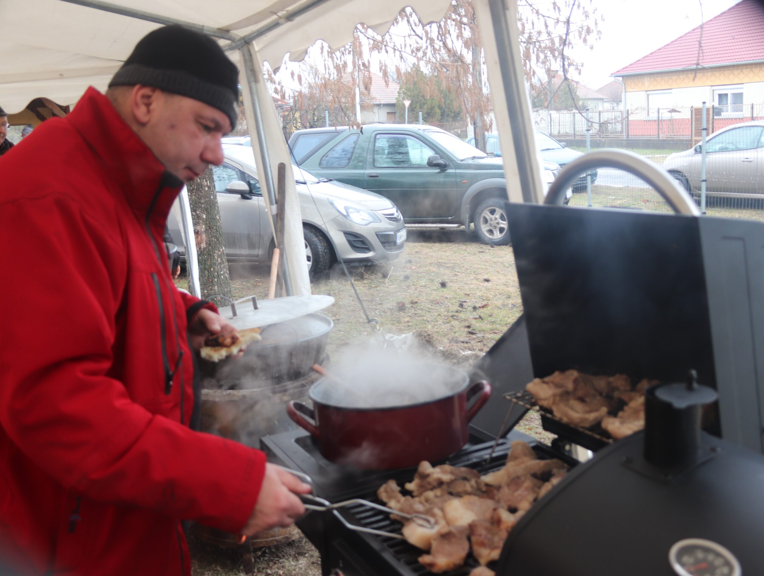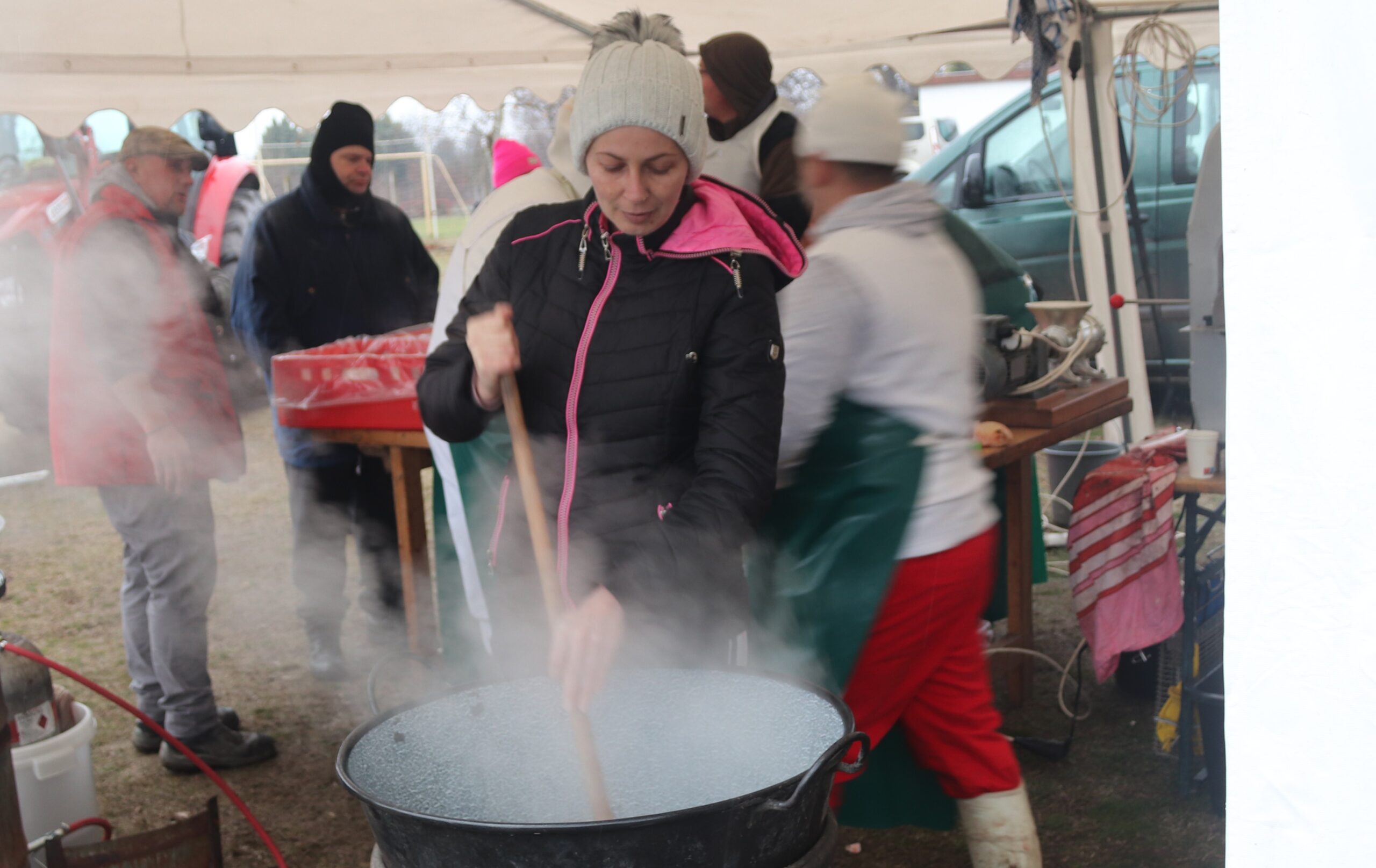 Az önkormányzat nem bízott semmit sem a véletlenre, nem akarták azt, hogy valaki éhen maradjon. Éppen ezért előző nap már vágtak egy disznót, amiből négyszáz hurkát és négyszáz kolbászt készítettek, hogy reggelire mindenkinek legyen mit enni. Fogyott is szépen, de utána a szombaton levágott sertés húsából újabb kolbász és hurka adagok kerültek az asztalra, illetve a papírtálcákra. A szalonnát pedig kisütötték. Senki sem panaszkodott, hogy nem lakott jól és természetesen repetára is volt lehetőség.