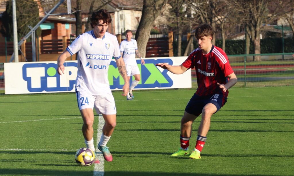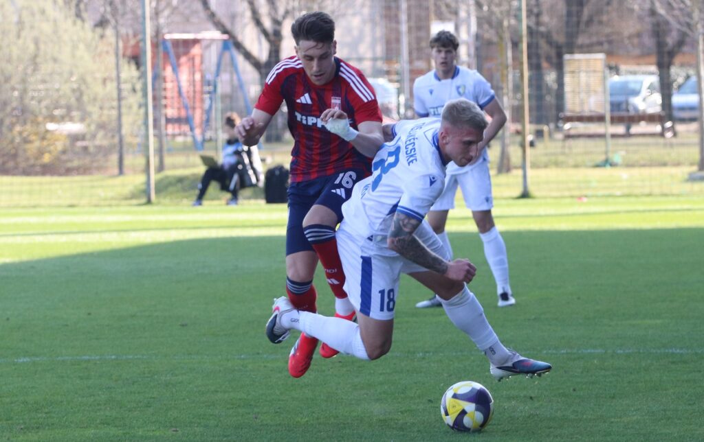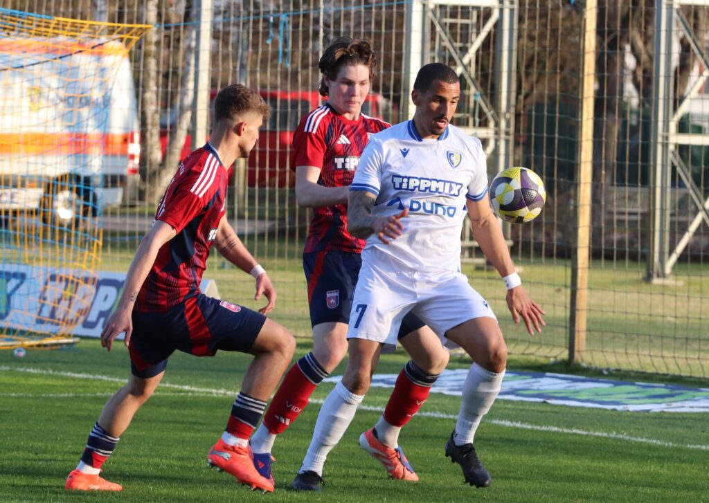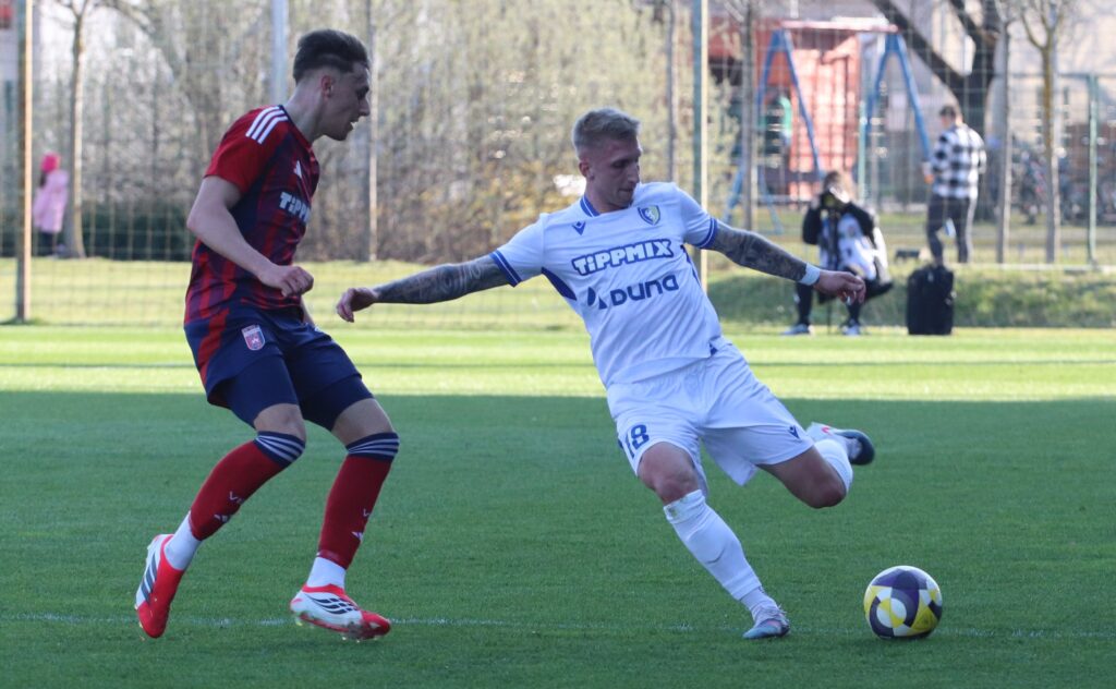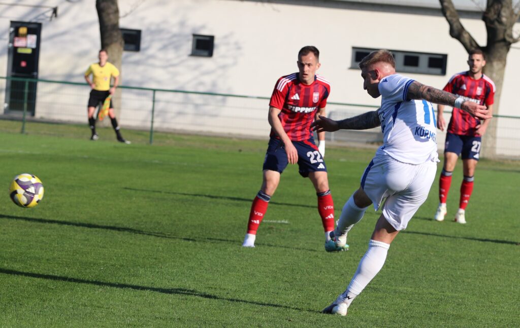 Nagy elánnal vetette bele magát mind két csapat a játékba, úgy tűnt, mintha gyorsan el akarnák dönteni a találkozó eredményét. De aztán lenyugodtak a kedélyek és mind két oldalon akadtak helyzetek. Közel félórával a találkozó megkezdése előtt egy gyors jobb oldali támadás után Murka Benedek éles szögből lőtt a jobb alsó sarokba 0-1. A félidő hátralévő perceiben kiegyenlített játék folyt a pályán.