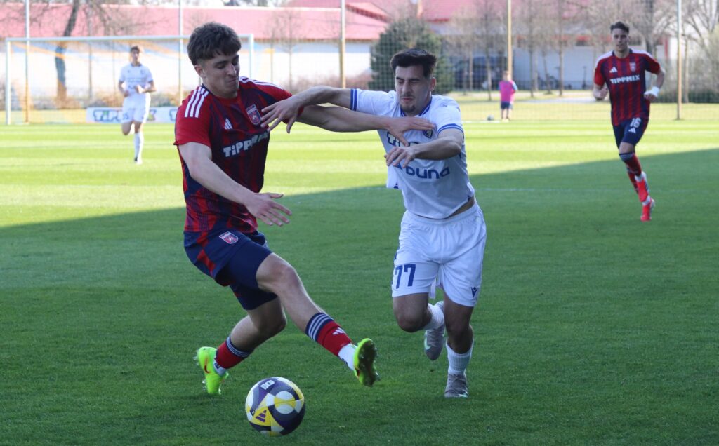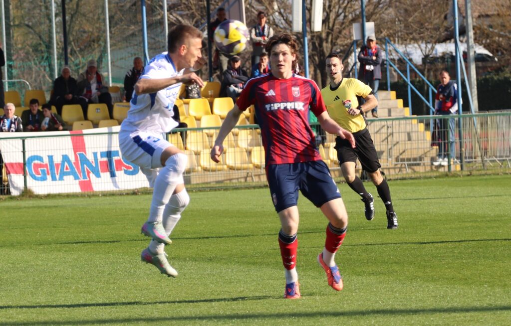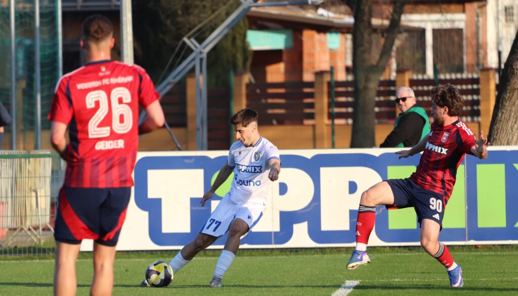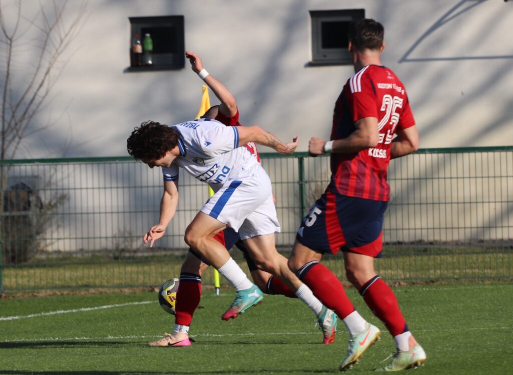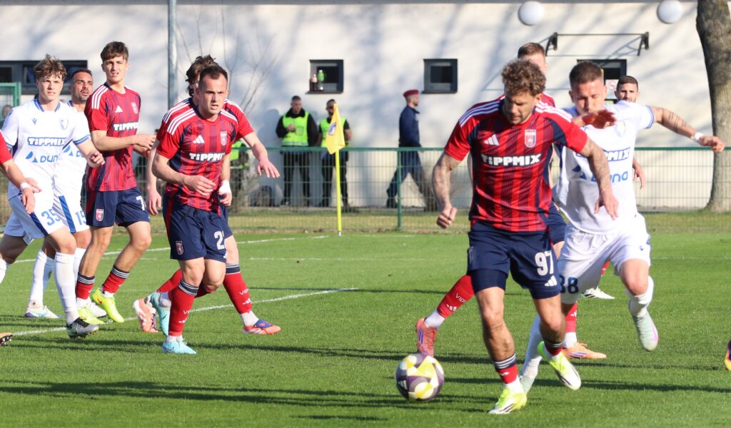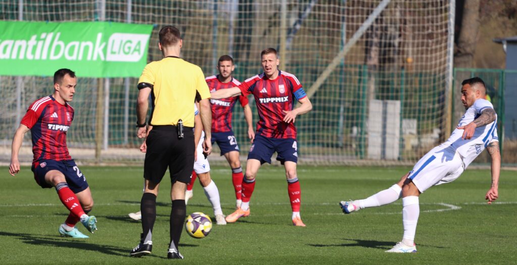Nagy elánnal vetette bele magát mind két csapat a játékba, úgy tűnt, mintha gyorsan el akarnák dönteni a találkozó eredményét. De aztán lenyugodtak a kedélyek és mind két oldalon akadtak helyzetek. Közel félórával a találkozó megkezdése előtt egy gyors jobb oldali támadás után Murka Benedek éles szögből lőtt a jobb alsó sarokba 0-1. A félidő hátralévő perceiben kiegyenlített játék folyt a pályán.
