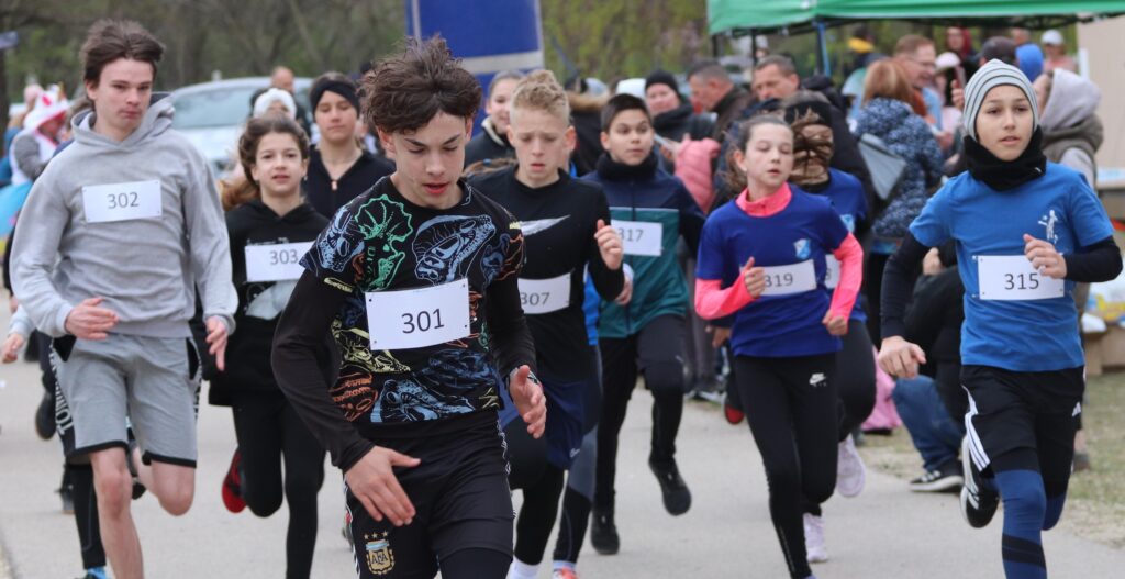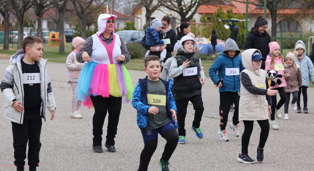 Először Galambos Norbert Márk testnevelő tanár irányításával melegíthettek be a gyerekek, akik koruknak megfelelő távokat futottak, összesen 127-en. A bölcsődések kezdték, akiknek hetven méter kellett megtenniük, természetesen szülői segítséggel. Utána jöttek az óvodások, akikre 120 méter várt. Náluk is segédkeztek még a szülők. Őket követték az első-második, valamint a harmadik-negyedik osztályosok 750 méterrel, majd pedig a felső tagozatosok másfél kilométerrel. Minden befutó érmet kapott, az első három helyezettek pedig kupát és ajándékot is.