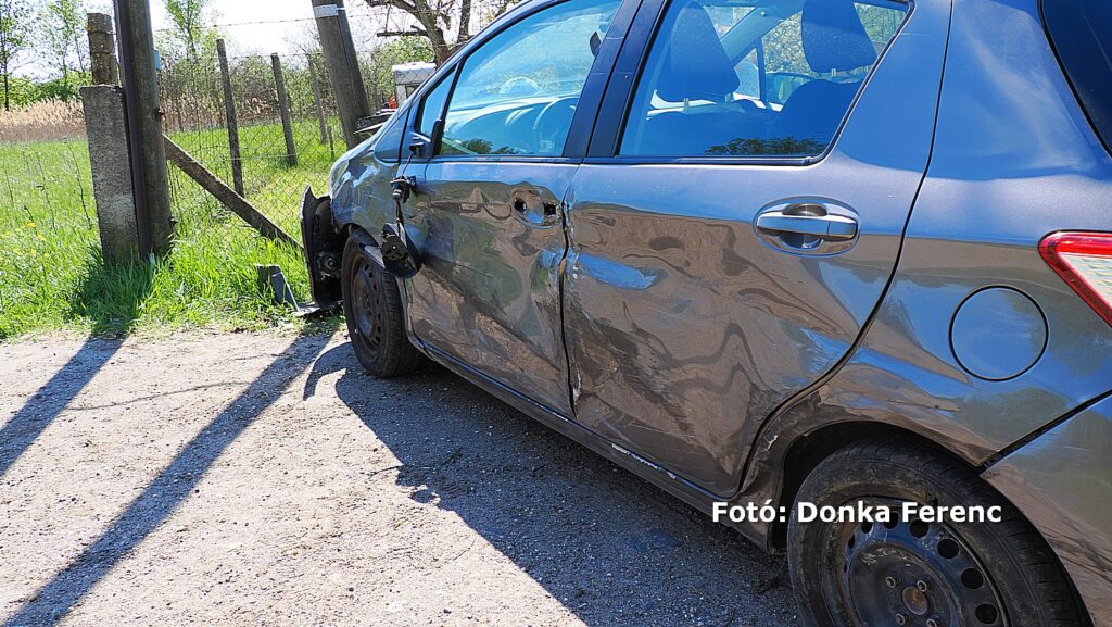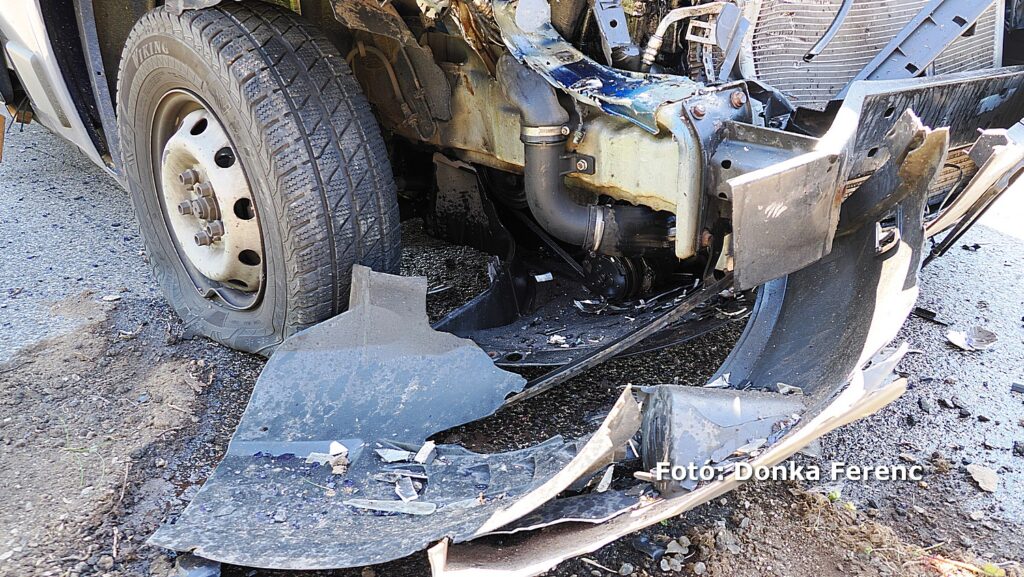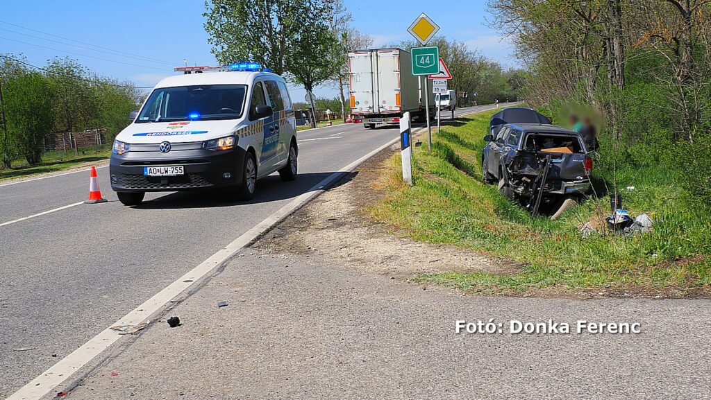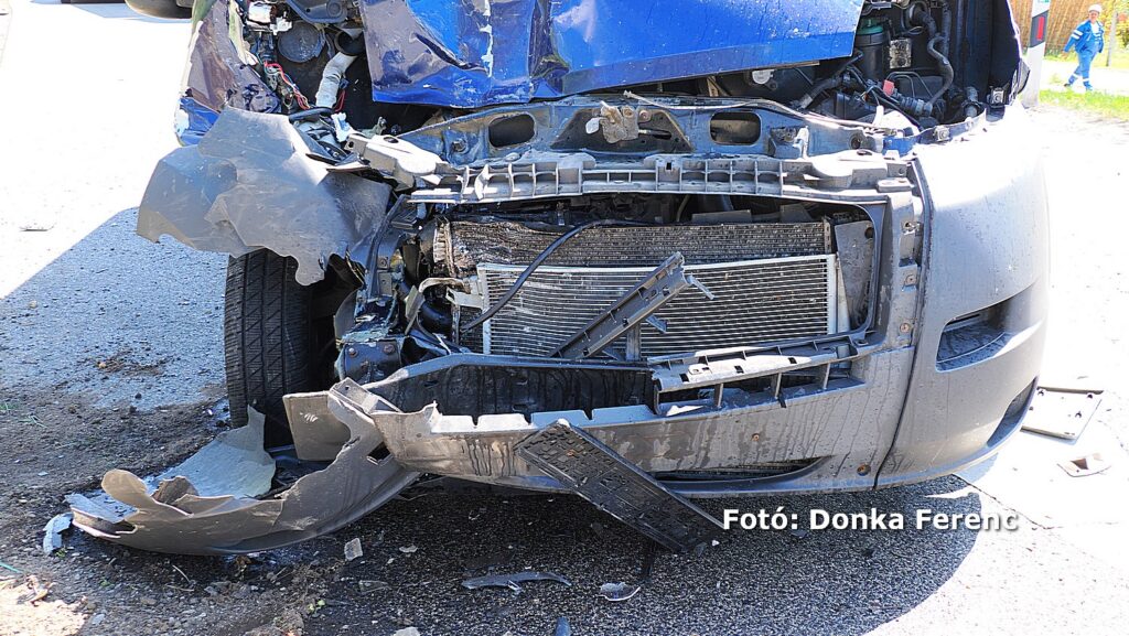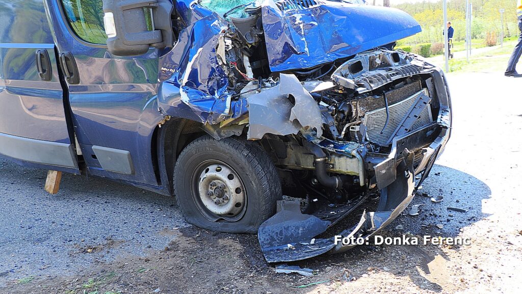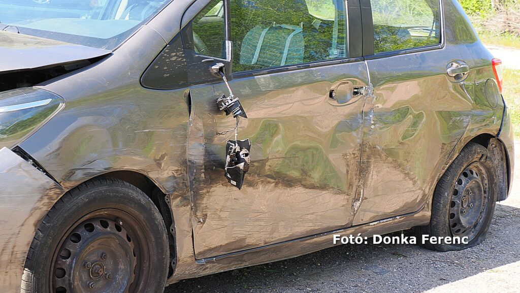 Egy szürke Toyota terepjáró akart balra nagy ívben kanyarodni, amikor a mögötte érkező kisteherautó vezetője ezt későn vette észre és nekiütközött. Ettől a kanyarodni szándékozó terepjáró átsodródott a másik sávba, ahol összeütközött egy személyautóval, amitől a terepjáró az árokba csapódott.
