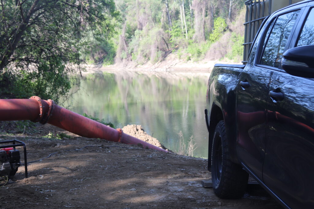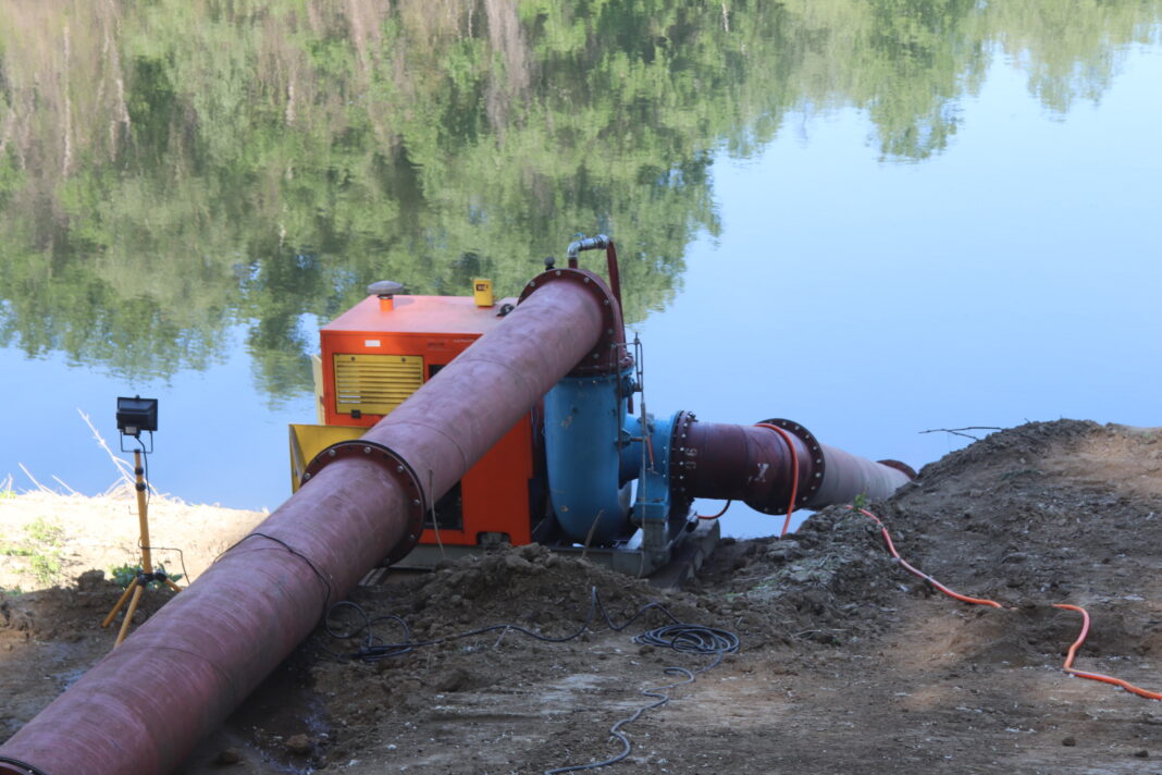 ÍZÜGY a szivattyút biztosítja számunkat, a holtág üzemeltetője Király és Társa Kft., valamint az önkormányzat közösen végzi el a holtág feltöltését. Számításaink szerint tíz napon keresztül folyamatosan nyomja majd a szivattyú a vizet. Utána várunk pár napot, hogy elterüljön a víz és ha szükséges, akkor még néhány napon keresztül tovább fog üzemelni a szivattyú. Mivel a holtág vízszintje a kezdéskor 110 centiméter volt, szeretnénk felemelni 200 centiméterre.