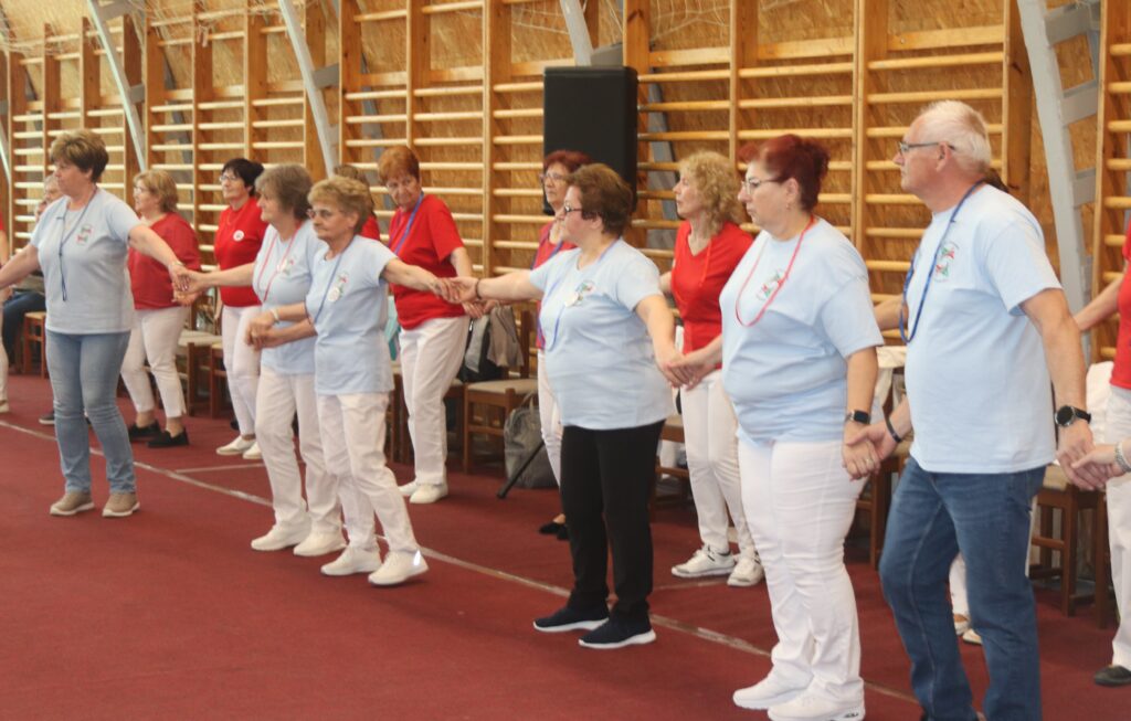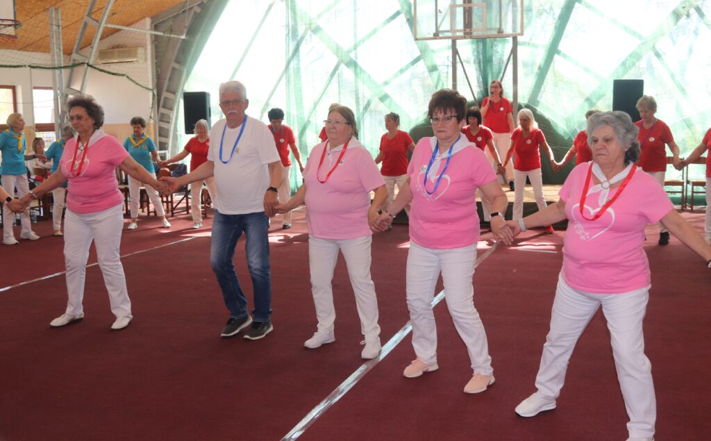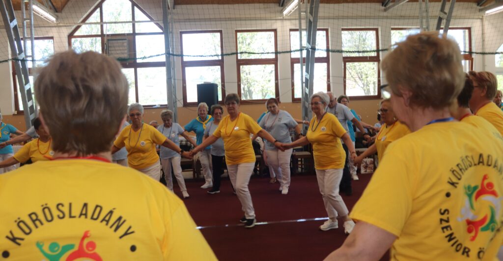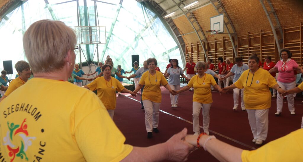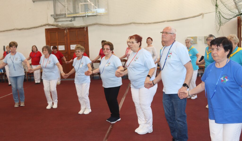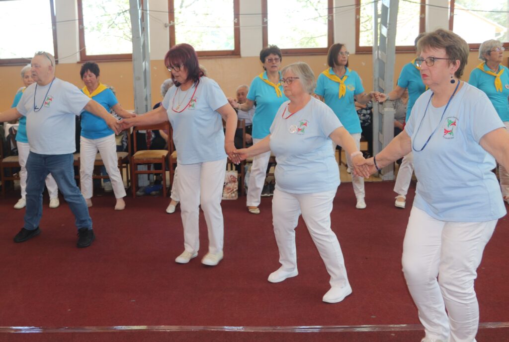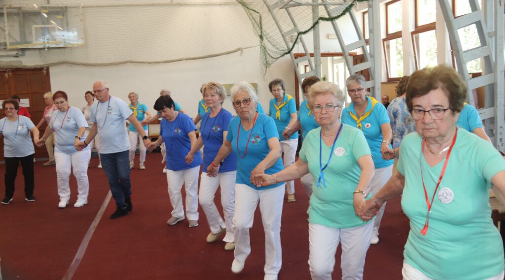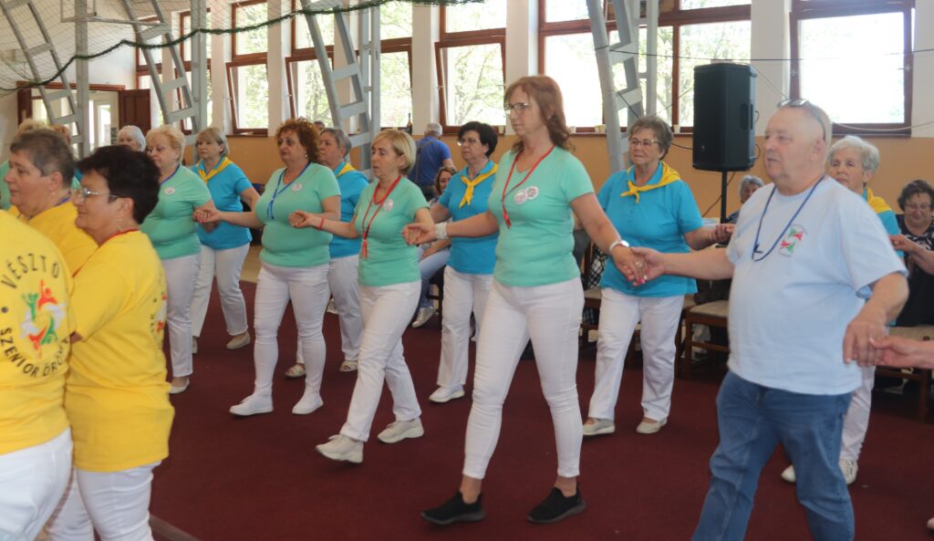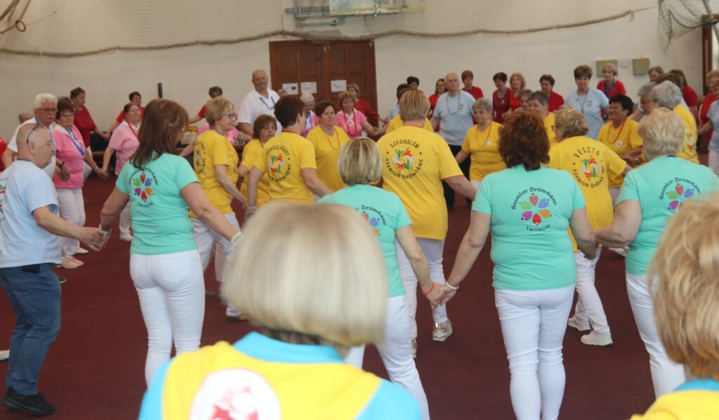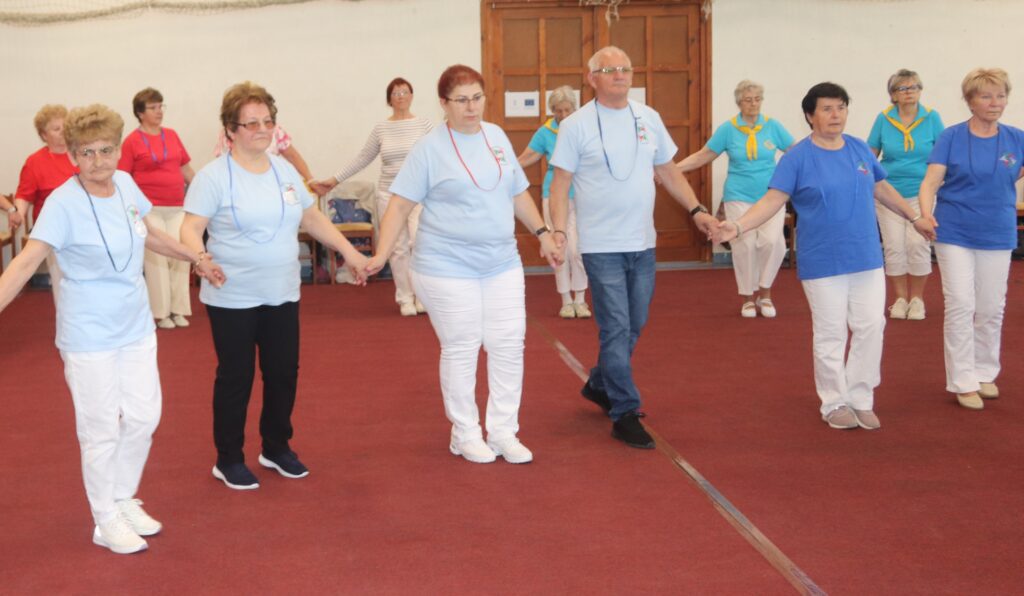 A résztvevő csoportok – szinte mindenki már nyugdíjas volt közöttük – három kört alakítottak ki, megfogták egymás kezét és a zene ütemére, az oktatók által elmondott koreográfiára mozogtak. Az idősebb korosztály hamarabb elfárad, de amikor megszólalt a zene, akkor mindenkinek elmúlt minden baja, és egymás mellett mozogtak a zene ütemére. Természetesen, aki elfáradt az leülhetett, de nagyon sokan végig táncolták, kisebb szünetekkel, a négy órát. A vendéglátó helyi Őszifény Nyugdíjas Klub gondoskodott arról, hogy a csoportok tagjai ne maradjanak étlen és szomjan.