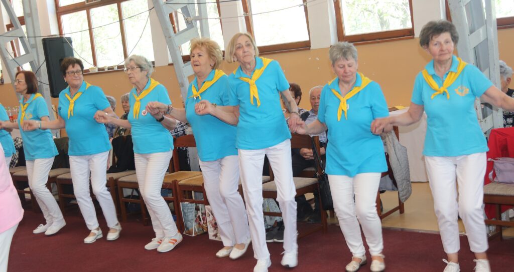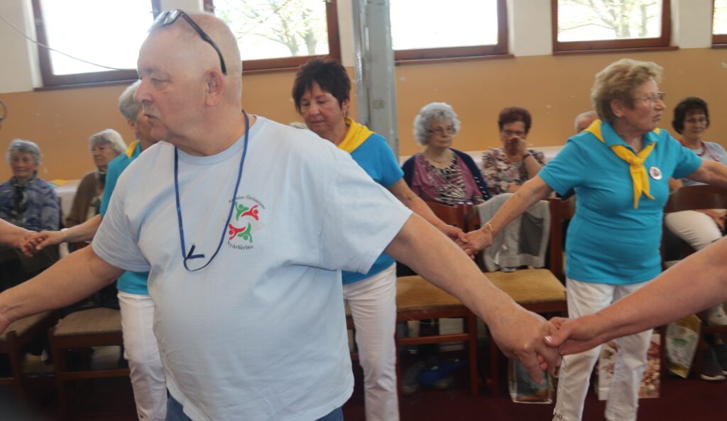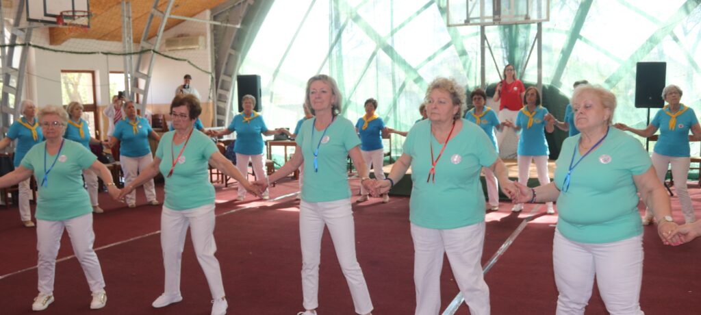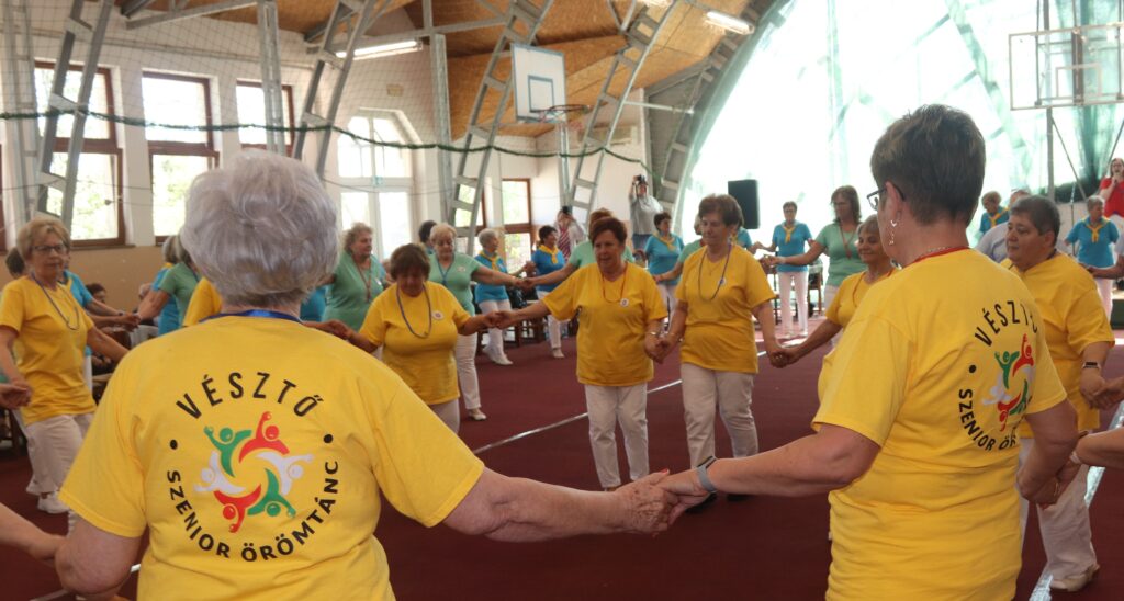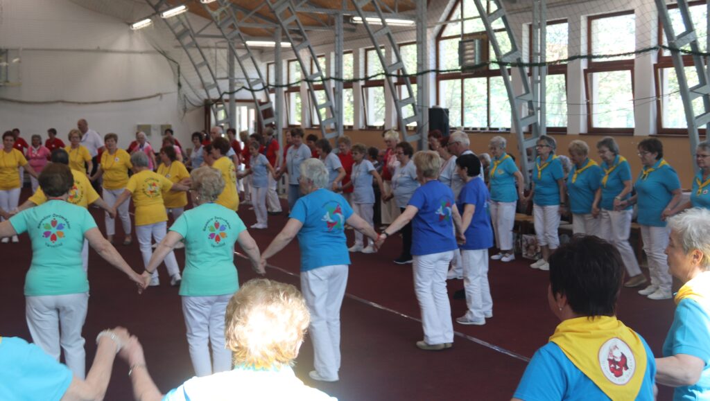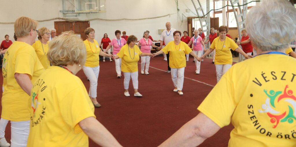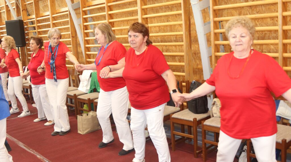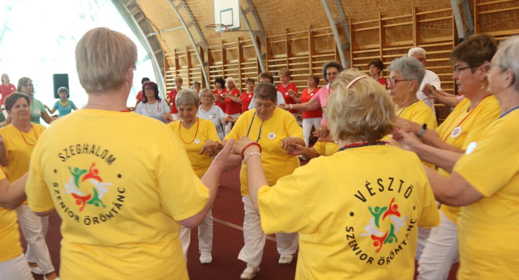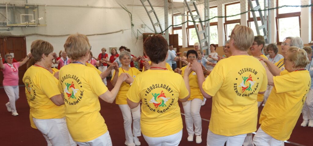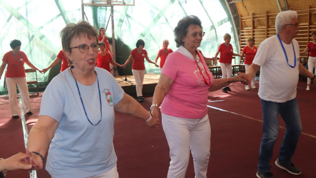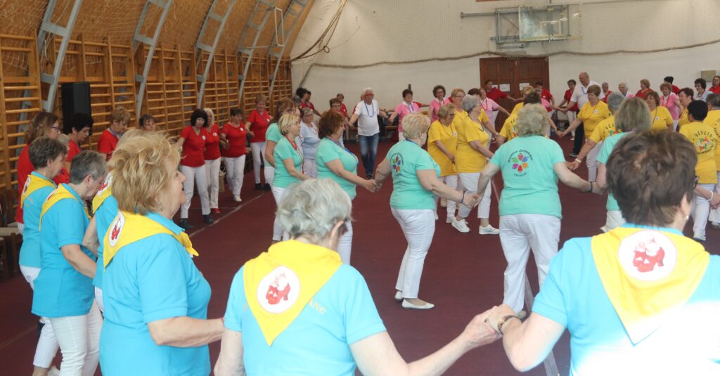 A résztvevő csoportok – szinte mindenki már nyugdíjas volt közöttük – három kört alakítottak ki, megfogták egymás kezét és a zene ütemére, az oktatók által elmondott koreográfiára mozogtak. Az idősebb korosztály hamarabb elfárad, de amikor megszólalt a zene, akkor mindenkinek elmúlt minden baja, és egymás mellett mozogtak a zene ütemére. Természetesen, aki elfáradt az leülhetett, de nagyon sokan végig táncolták, kisebb szünetekkel, a négy órát. A vendéglátó helyi Őszifény Nyugdíjas Klub gondoskodott arról, hogy a csoportok tagjai ne maradjanak étlen és szomjan.