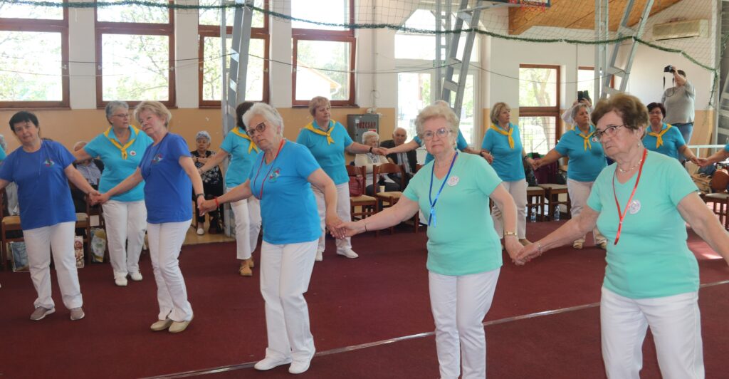 Több, mint száz szenior táncos ropta a táncot a tornacsarnokban
